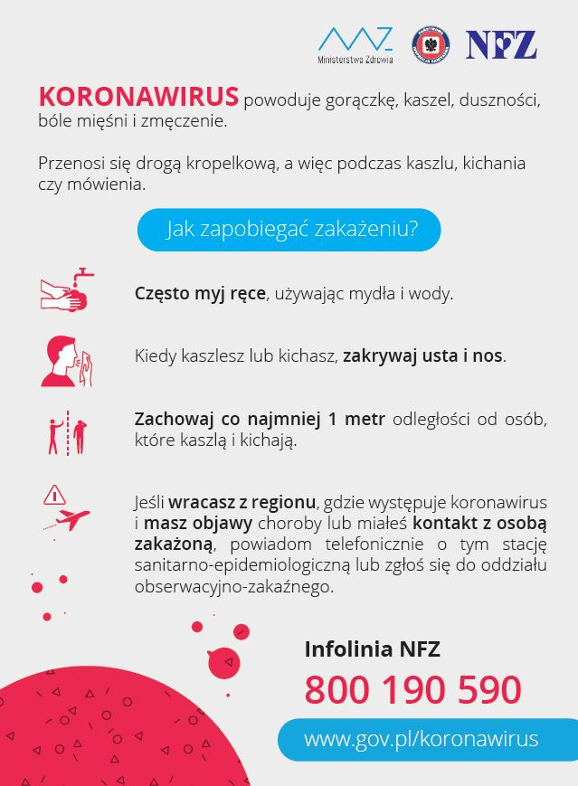 INFOLINIA NFZ w sprawie KORONOWIRUSA - 800 190 590
