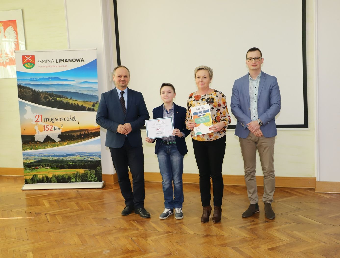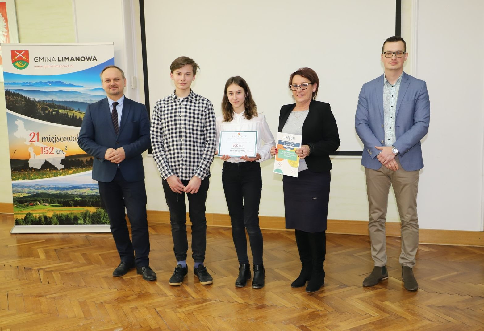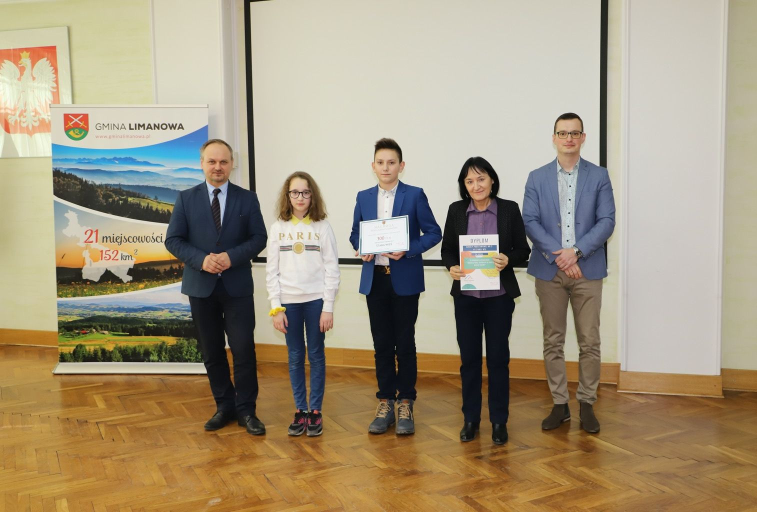 Nagrody przedstawicielom szkół biorących udział w Konkursie wręczał Wójt Gminy Limanowa Jan Skrzekut, który był fundatorem nagród pieniężnych. Wraz z Wójtem w podsumowaniu Konkursu wzięli udział inicjatorzy i koordynatorzy przedsięwzięcia - Kierownik Wydziału Gospodarki Komunalnej, Mieszkaniowej i Komunikacji w Urzędzie Gminy Limanowa Adam Górszczyk oraz Dyrektor Gminnego Zespołu Obsługi Szkół Edyta Król.