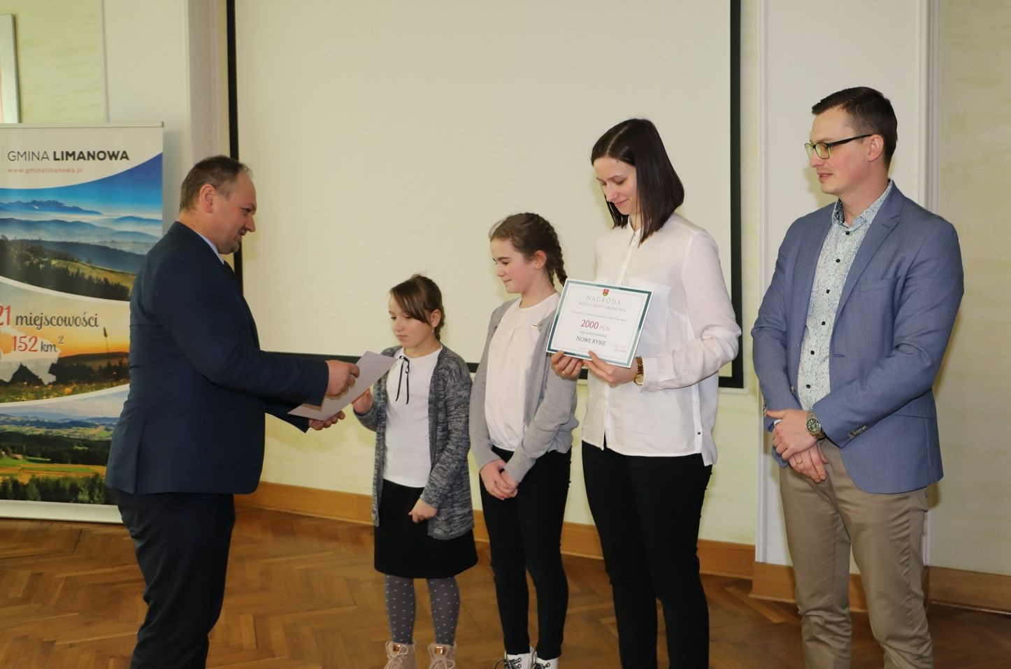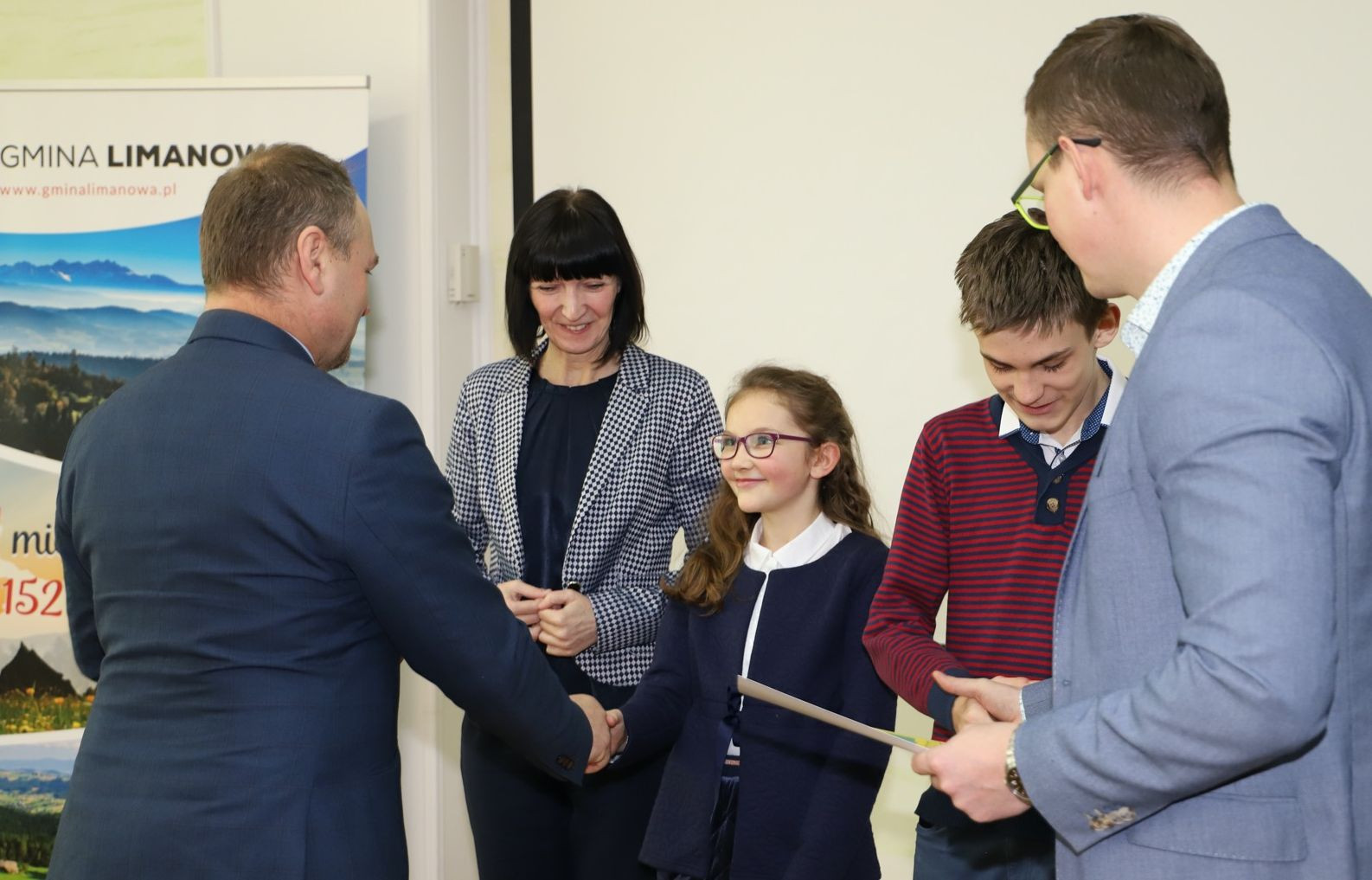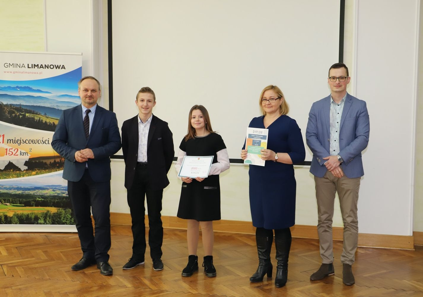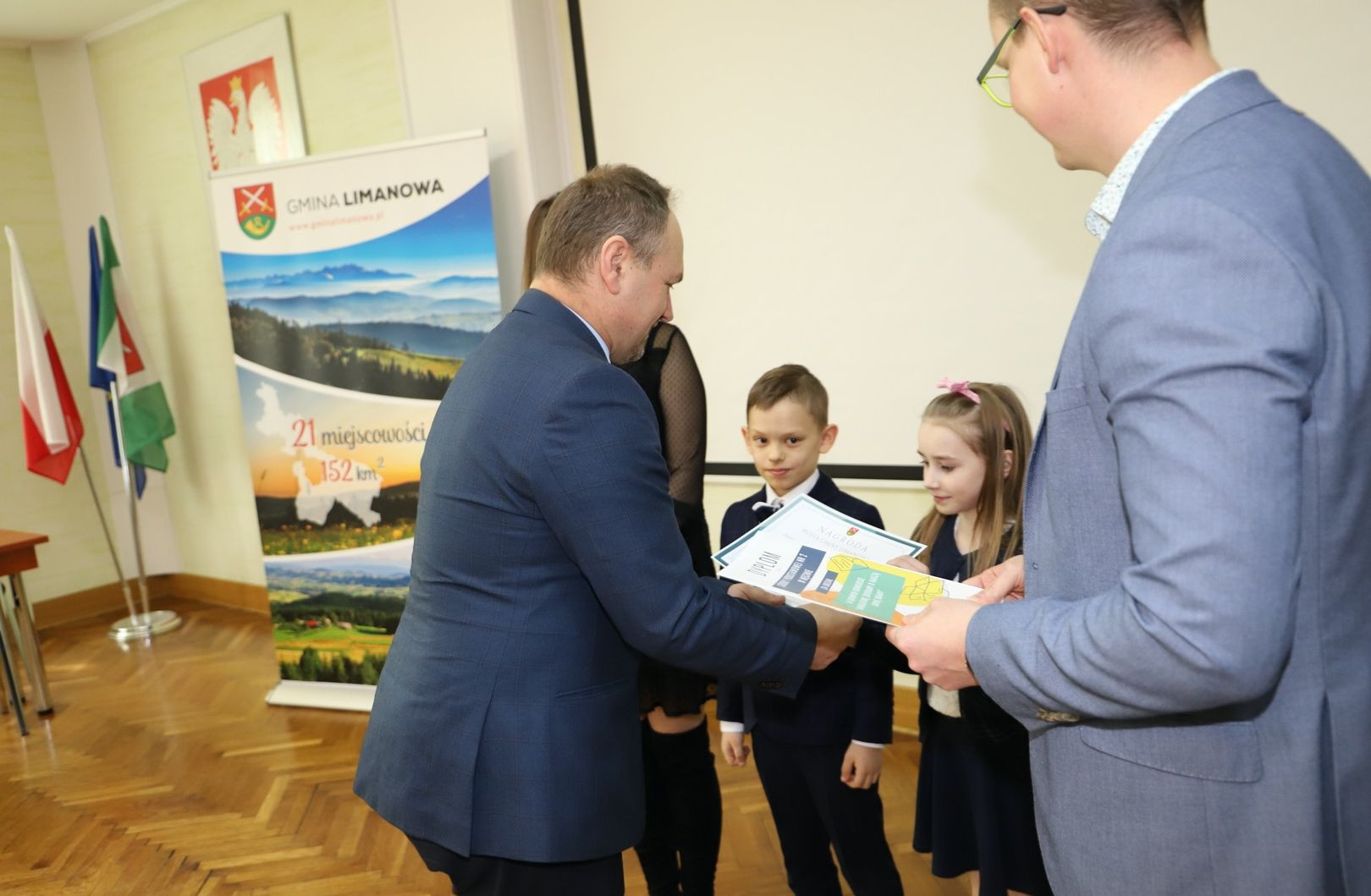 Nagrody przedstawicielom szkół biorących udział w Konkursie wręczał Wójt Gminy Limanowa Jan Skrzekut, który był fundatorem nagród pieniężnych. Wraz z Wójtem w podsumowaniu Konkursu wzięli udział inicjatorzy i koordynatorzy przedsięwzięcia - Kierownik Wydziału Gospodarki Komunalnej, Mieszkaniowej i Komunikacji w Urzędzie Gminy Limanowa Adam Górszczyk oraz Dyrektor Gminnego Zespołu Obsługi Szkół Edyta Król.