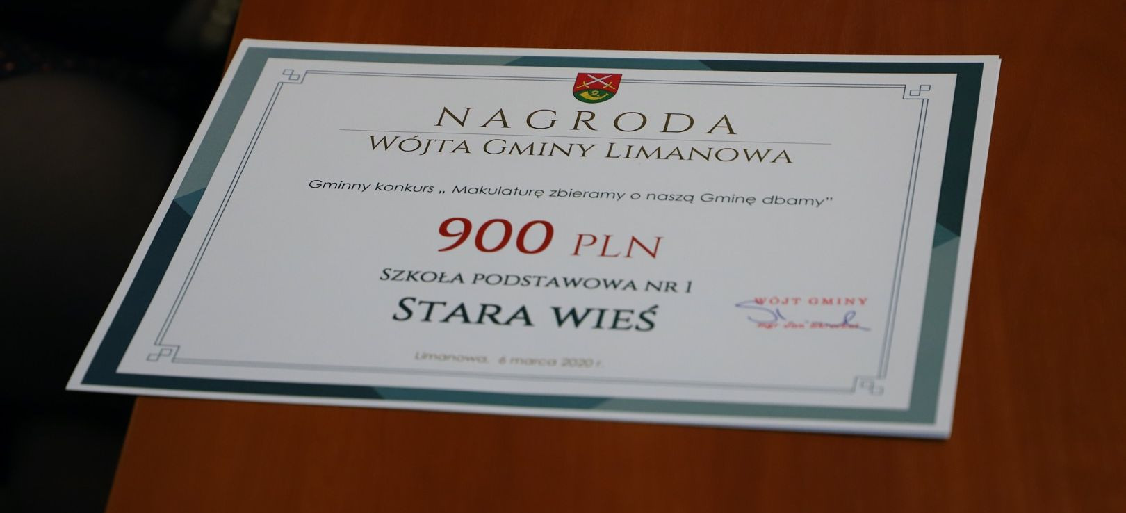 Dnia 6 marca w Urzędzie Gminy Limanowa miało miejsce podsumowanie Konkursu „Makulaturę zbieramy o naszą Gminę dbamy”, w którym wzięły udział Szkoły Podstawowe wraz z Oddziałami Przedszkolnymi z terenu gminy Limanowa.