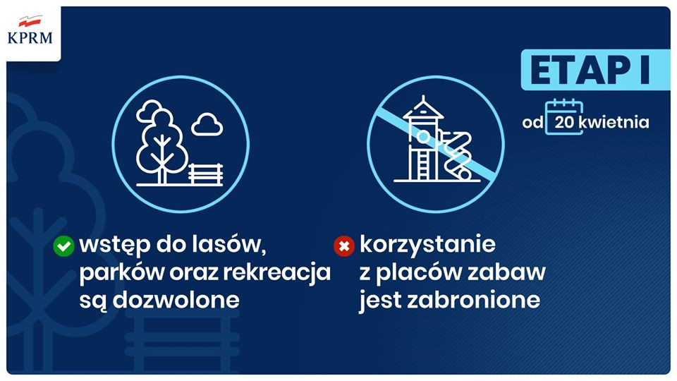 - otwarcie lasów i parków, z wyłączeniem placów zabaw