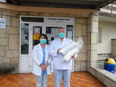 O tym, jak ważne są sprawy związane ze zdrowiem mieszkańców Gminy Limanowa świadczy inicjatywa Wójta Gminy Limanowa Jana Skrzekuta, który 14 kwietnia przekazał szpitalowi w Limanowej jakże potrzebny w obecnej sytuacji sprzęt do ochrony osobistej pacjentów oraz personelu medycznego. Zakupione przez Urząd Gminy Limanowa specjalistyczne maseczki typu FFP2 Wójt przekazał dr Adamowi Rysiowi kierującemu oddziałem pulmonologii w limanowskim szpitalu oraz siostrze oddziałowej.