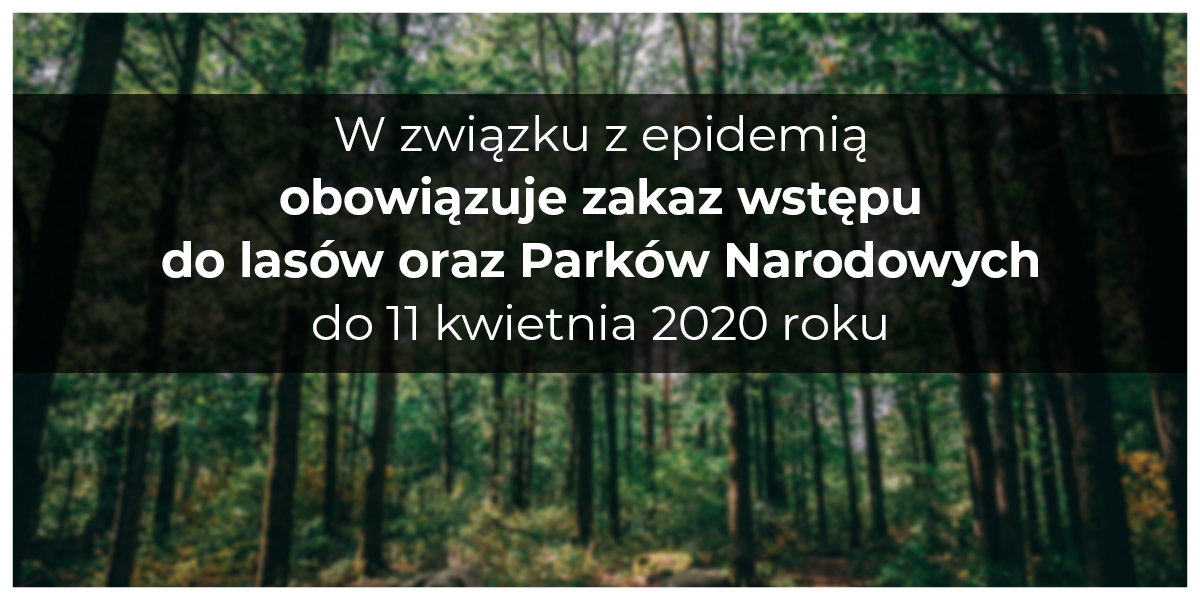 Z polecenia Premiera RP Pana Mateusza Morawieckiego, w trosce o zdrowie i bezpieczeństwo, w związku ze stanem epidemii, od 3 kwietnia do 11 kwietnia br. włącznie, Lasy Państwowe wprowadzają tymczasowy zakaz wstępu do lasu, a Parki Narodowe pozostają zamknięte.