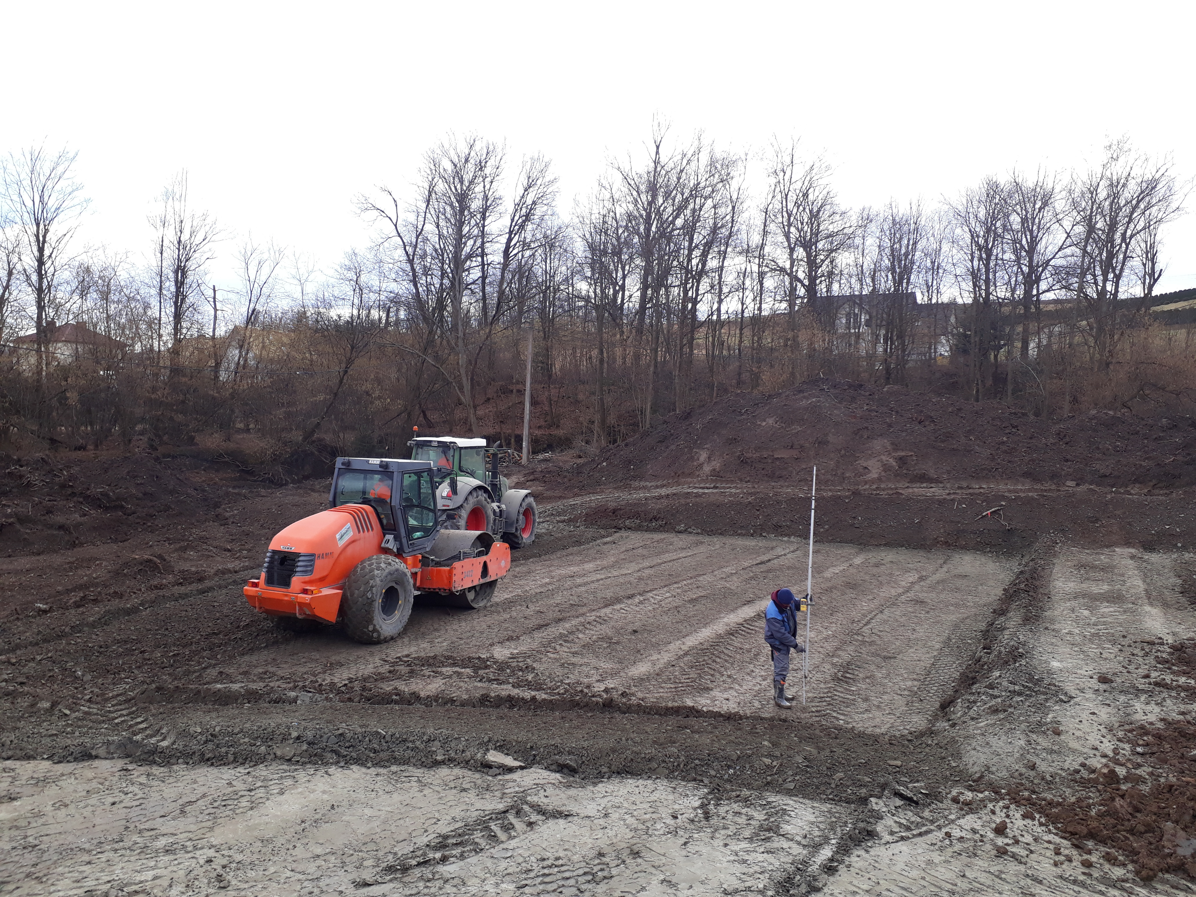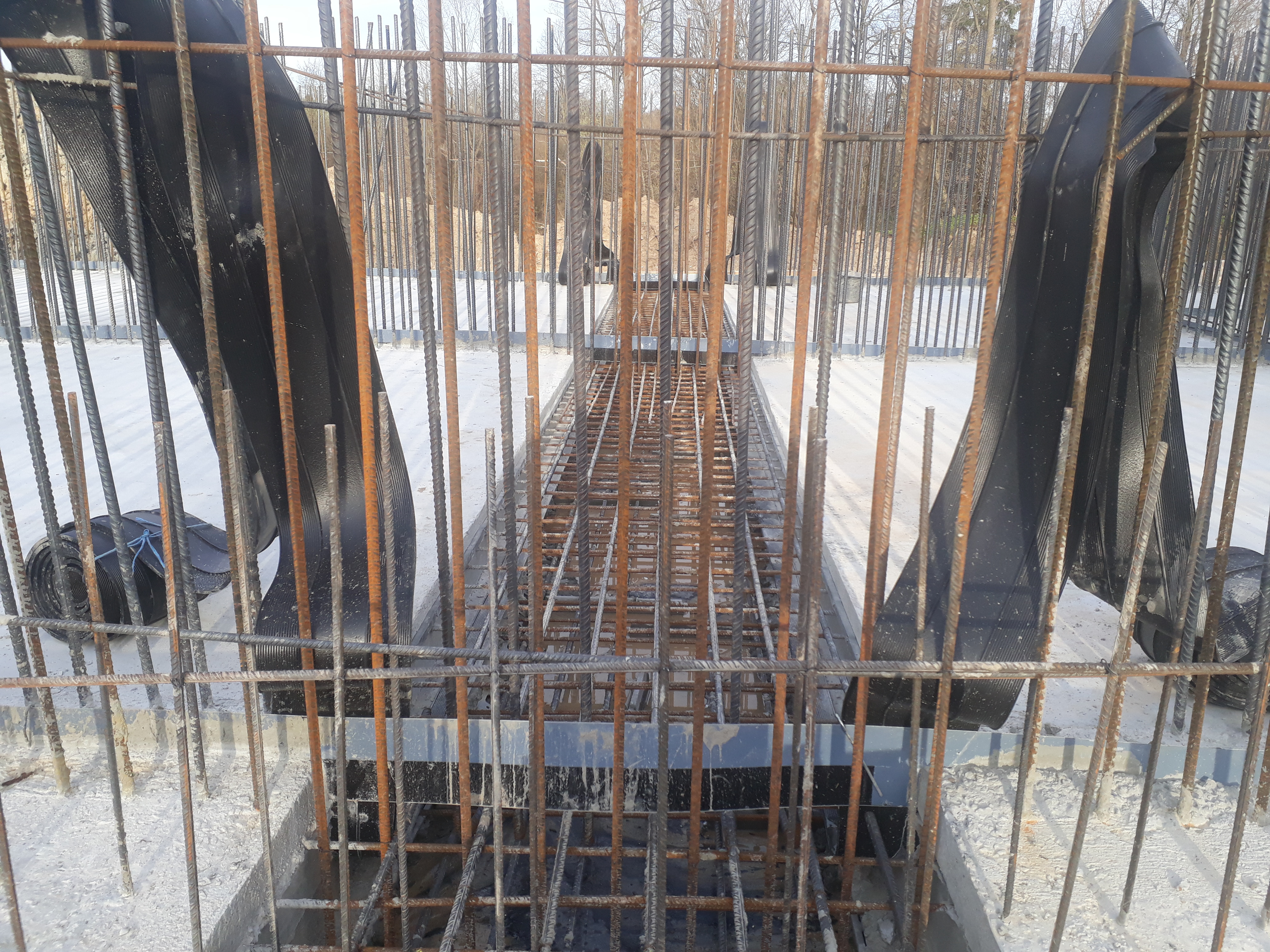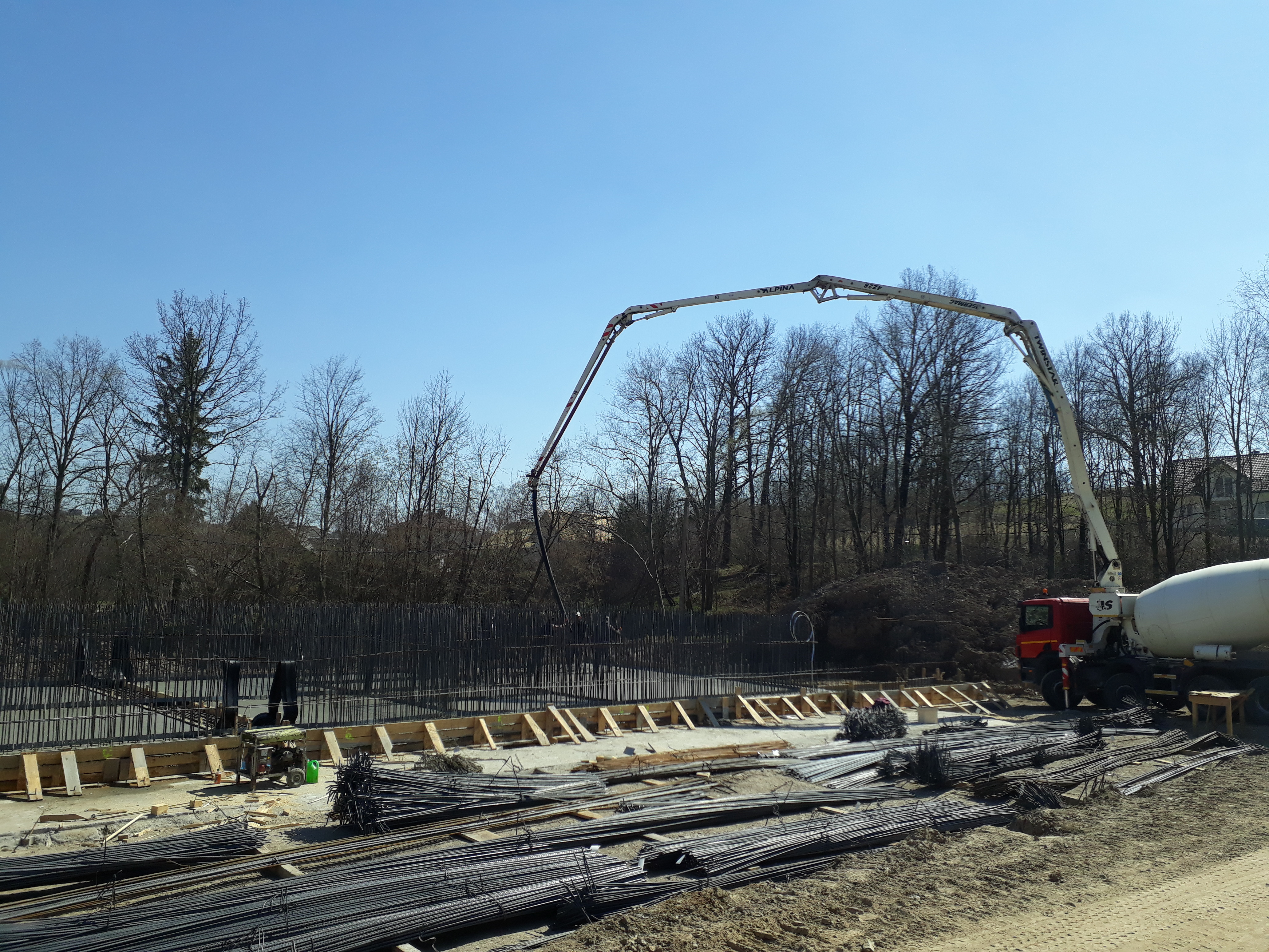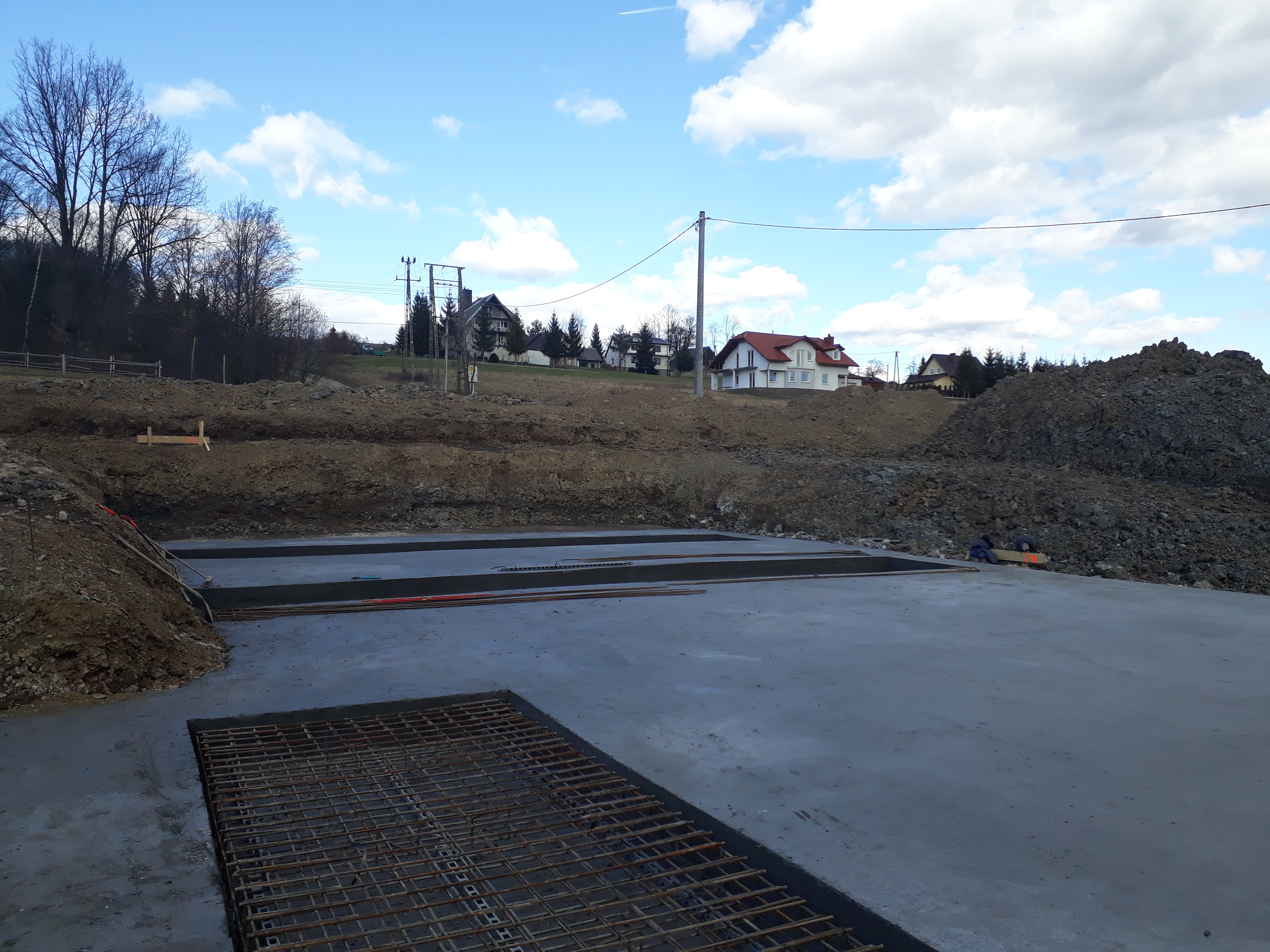 W pierwszej kolejności usunięto kolizję z siecią średniego napięcia, wykonano roboty ziemne i zjazd z drogi gminnej oraz stabilizację gruntu pod obiekt. Następnie wykonano płyty denne zbiorników i przystąpiono do montażu zbrojenia ścian.