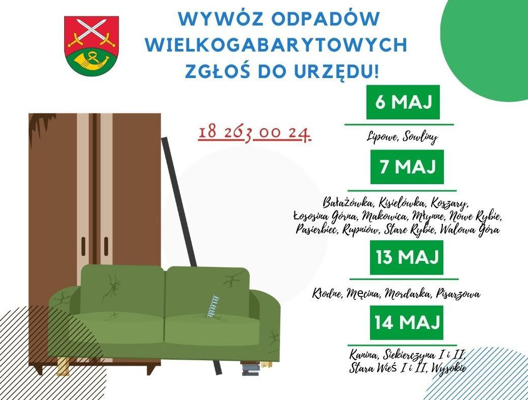 Przypominamy mieszkańcom o najbliższych terminach wywozu odpadów wielkogabarytowych: