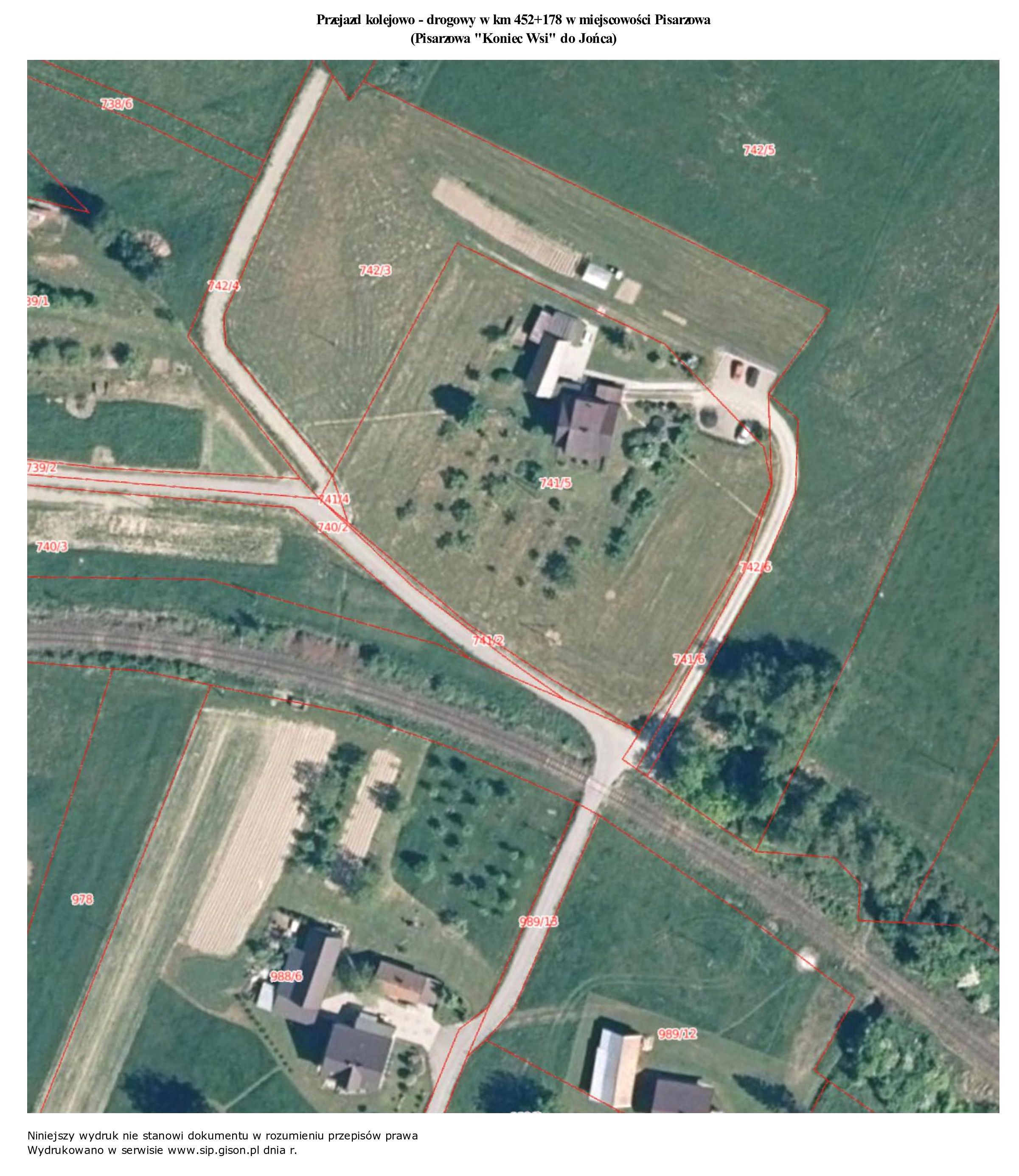 dotyczące przejazdu kolejowo – drogowego w km 52,178 w miejscowości Pisarzowa (Pisarzowa koniec wsi do Jońca)