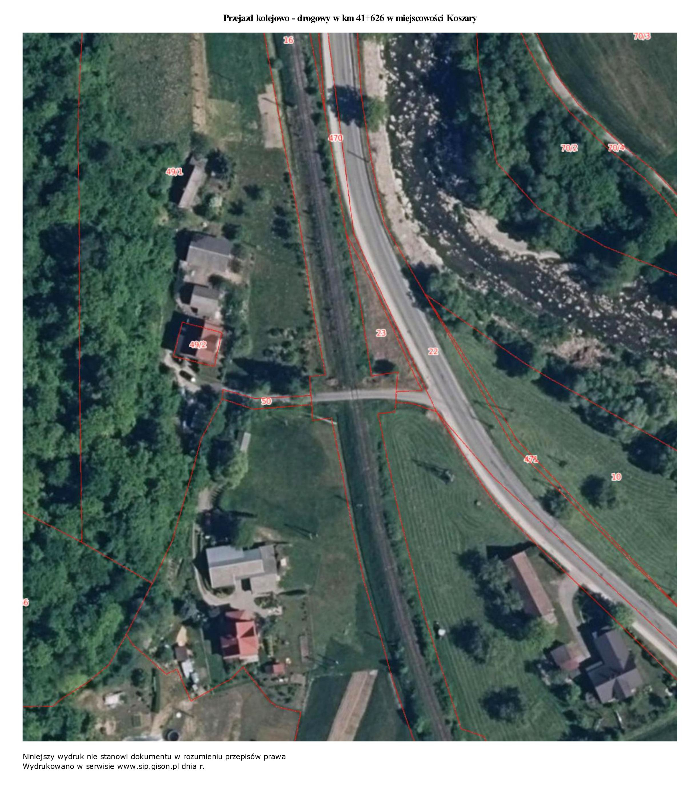 dotyczące przejazdu kolejowo – drogowego w km 41,626 w miejscowości Koszary