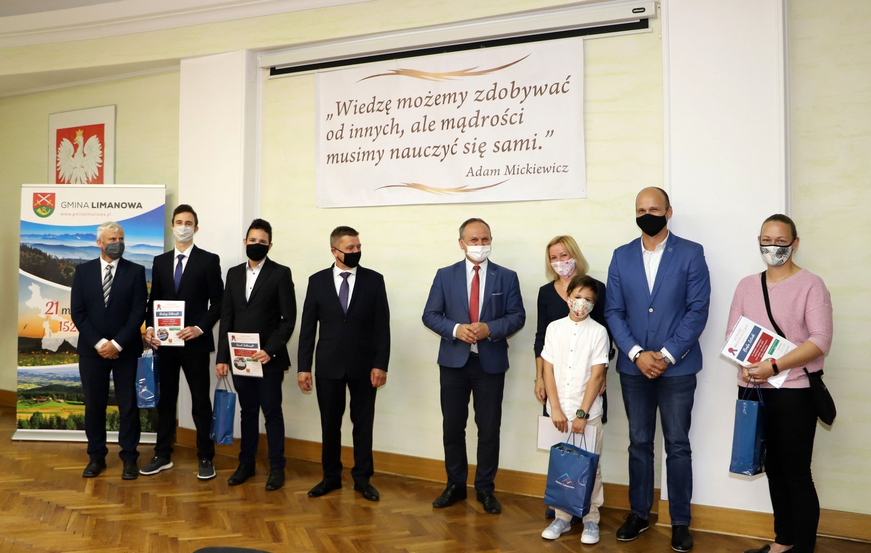W dniu 23 czerwca br. w sali konferencyjnej Urzędu Gminy Limanowa wręczono nagrody uczniom klas ósmych za szczególne osiągnięcia w nauce w roku szkolnym 2019/2020 oraz sportowcom za wysokie wyniki zdobyte w 2019 roku. Uroczystość była również okazją do przedłużenia powierzenia stanowiska dyrektorom 7 placówek oświatowych.