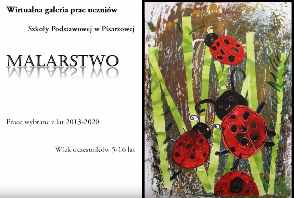 Serdecznie zapraszamy do wirtualnej galerii prac plastycznych uczniów Szkoły Podstawowej im. ks. Józefa Górszczyka w Pisarzowej. Prace, które możemy podziwiać to wybrane, małe dzieła uczniów z lat 2013-2020. Prace są eksponowane w formie prezentacji malarstwa i rysunku na 80 planszach tematycznych. Plansze zostały przygotowane na wystawę, która z powodu czasowego ograniczenia funkcjonowania jednostek kultury niestety nie mogła się odbyć. Mamy jednak nadzieję, że ekspozycja będzie mogła być dostępna do obejrzenia już wkrótce.