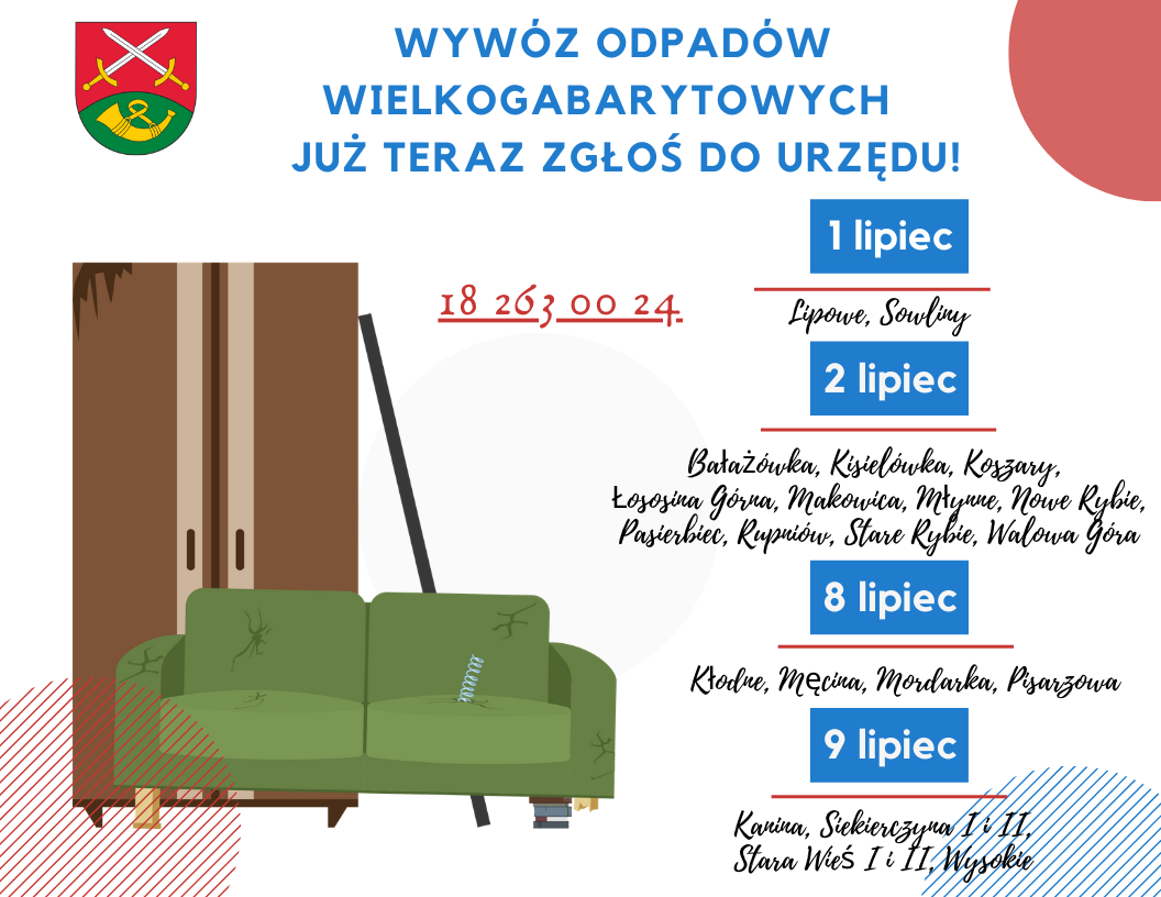 Informujemy, że w miesiącu lipcu odbędzie się przedostatni w tym roku odbiór odpadów wielkogabarytowych na terenie gminy Limanowa.
