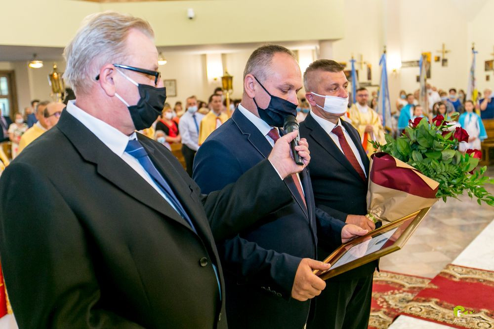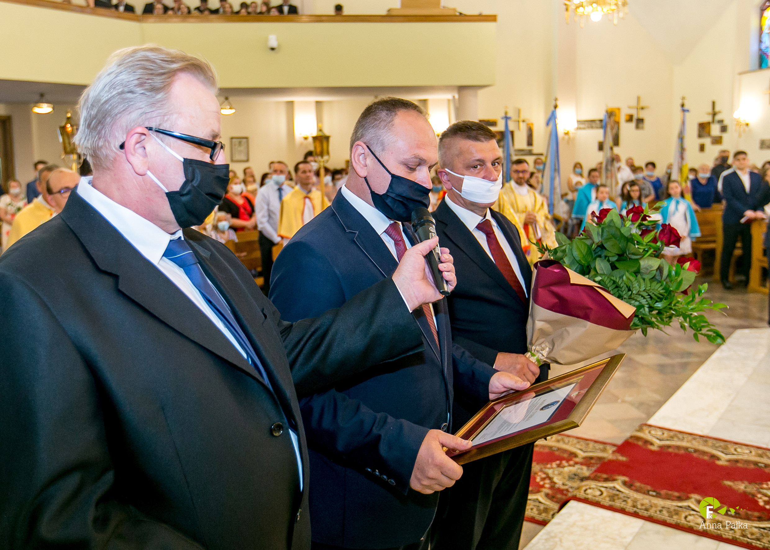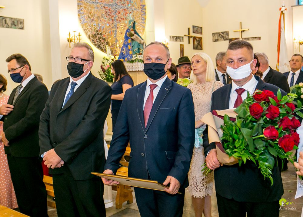 Delegacja władz Gminy, którą wraz z Wójtem Janem Skrzekutem tworzyli Przewodniczący Rady Gminy Limanowa Stanisław Młyński i radny Gminy Limanowa Bogdan Pałka w imieniu własnym, a także całej gminnej społeczności wyraziła wdzięczność za opiekę i troskę jaką ks. Prałat Marian Tyrka obdarzał członków Parafii oraz za cały trud włożony w budowanie Wspólnoty Parafialnej.