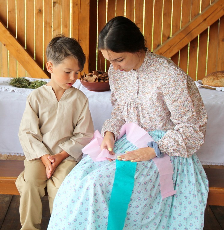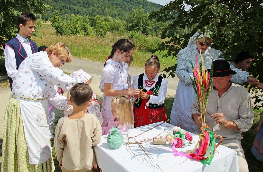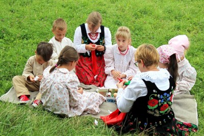 Są to zajęcia edukacyjno- manualne, skierowanie do dzieci i młodzieży, ale wkład wolontariuszy, Pań Seniorek, członków Zespołu Kijom Worci i Rodziców znacząco ponosi atrakcyjność warsztatów. Dodatkowego smaku nadaje dbałość o szczegóły: prowadzący i dzieci ubrani są w stroje, noszone przez dawnych mieszkańców lachowskiej wsi, tłem są muzealne wprost sprzęty i eksponaty, dzieci używają tylko naturalnych materiałów zdobniczych, a opowieści o dawnych zwyczajach i obrzędach, pełnych symboliki i mądrości- mimochodem stają się piękną lekcją tradycji i historii.