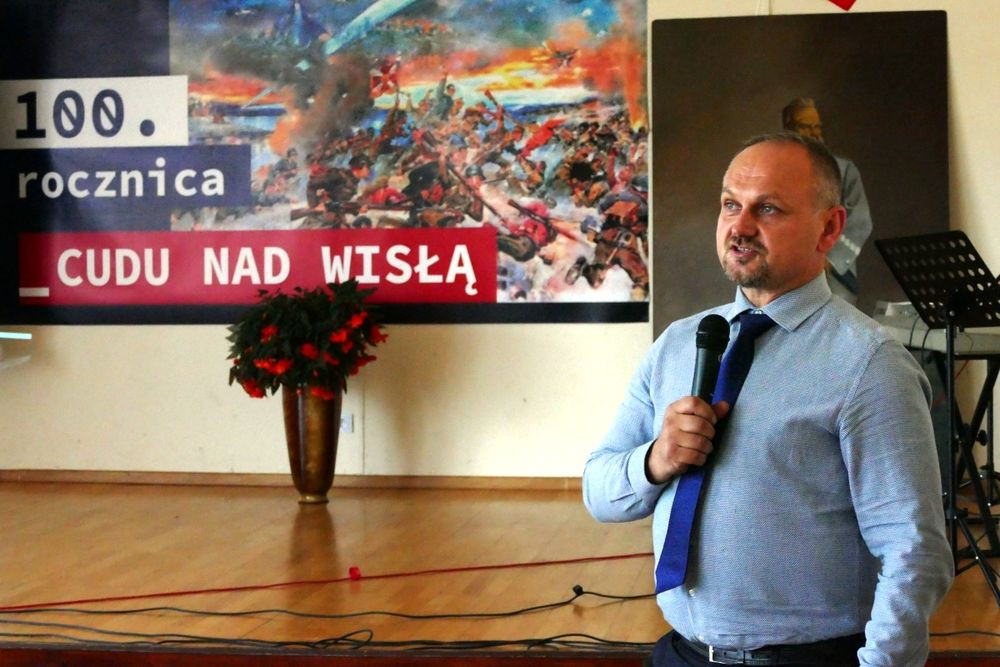W atmosferę tamtych wydarzeń, wprowadził zebranych występ Magdaleny Mól i Karoliny Kowalskiej z Zespołu Muzycznego Consonans, którego opiekunem jest radny miejski Leszek Mordarski. Wydarzenie rozpoczął i powitał przybyłych dyrektor Jacenty Musiał, który podziękował zebranym za postawę patriotyczną, że w tak trudnym czasie epidemii, tak liczne grono postanowiło uczcić wydarzenia sprzed 100 lat. Następnie głos zabrał wójt gminy, Jan Skrzekut, który podkreślił, jak ważną rolą w historii Polski i świata odegrała Bitwa Warszawska.