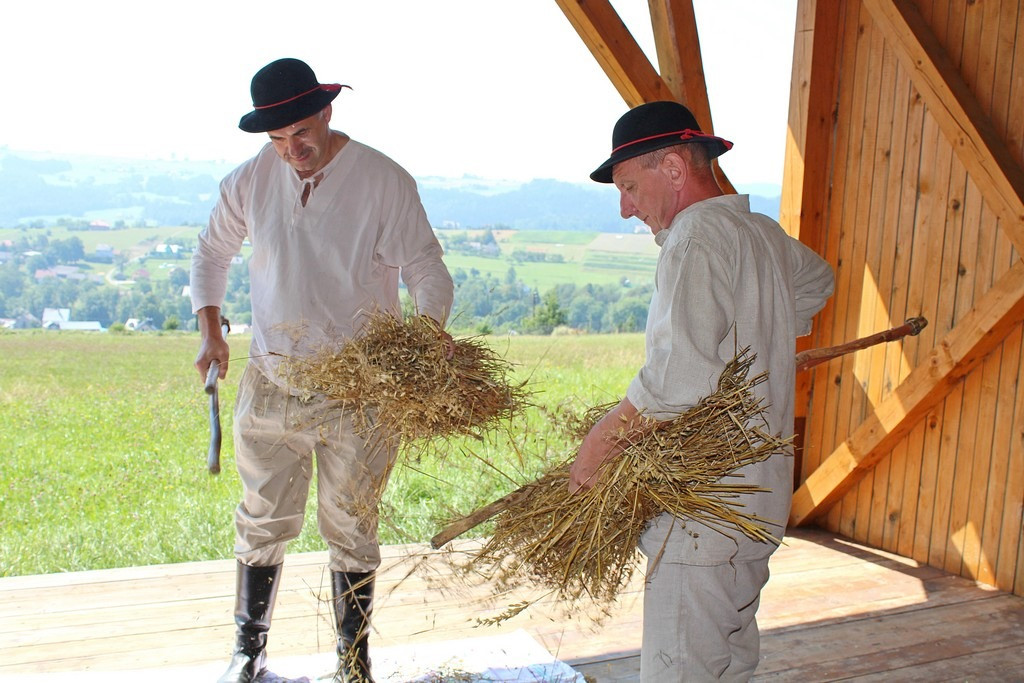 ...w dawnej Galicji chleba nie kupowało się w sklepie, jak obecnie. Był on produktem bardzo ciężkiej pracy wielu, wielu ludzi. Niewielkie poletka, które posiadali rolnicy, wymuszały wielką staranność, żeby dały jak najwyższe plony, szanowało się każdy kłos, bo ziarna musiało wystarczyć nie tylko na mąkę czy kaszę, ale część musiała posłużyć jako ziarno siewne w następnym roku. Kiedy zboże rosło, rolnikom nieustannie towarzyszyła obawa przed gradem, mokrym rokiem czy zniszczeniem zasiewów przez zwierzęta leśne. Często na tzw. "przednówku" niestety brakowało mąki na chleb i kaszę i ludzie cierpieli głód.