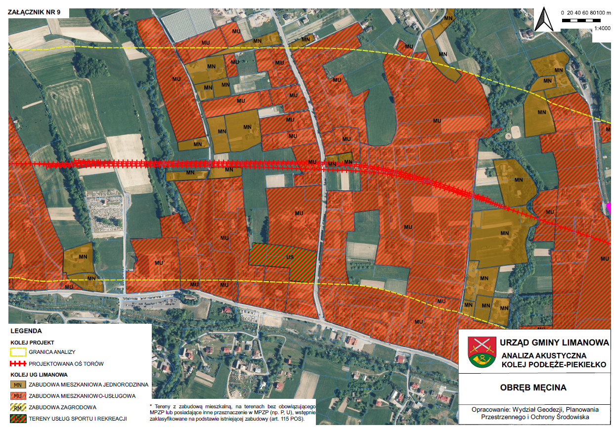 W związku z pismem K/OIiŚ/125/07/2020/PN, dotyczącym opracowania Raportu o oddziaływaniu na środowisko w ramach oceny oddziaływania na środowisko dla inwestycji pn. „Budowie nowej linii kolejowej Podłęże – Szczyrzyc – Tymbark / Mszana Dolną oraz modernizacji istniejącej linii kolejowej nr 104 Chabówka – Nowy Sącz – Etap I: prace przygotowawcze.”, obligującym tut. Urząd do sporządzenia analizy akustycznej w pasie 300 metrów od osi torów projektowanej linii kolejowej, a w dalszej kolejności do zaopiniowania lub przedstawieniu własnej propozycji klasyfikacji akustycznej dla terenu naszej gminy, w załączeniu przedstawiamy proponowaną klasyfikację akustyczną terenu dla miejscowości Męcina sporządzoną w oparciu o posiadane informacje z zakresu istniejącej i projektowanej zabudowy na danym terenie wraz z ewentualną możliwości jej dalszej kontynuacji.