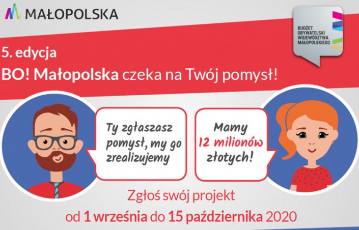 Od 1 września ruszył nabór zadań do 5. edycji Budżetu Obywatelskiego Województwa Małopolskiego. Do połowy października mieszkańcy Małopolski mają czas żeby złożyć zadanie i zebrać wymagane 30 podpisów poparcia. Na najlepsze zwycięskie zadania Zarząd Województwa Małopolskiego przeznaczy w sumie 12 mln zł.