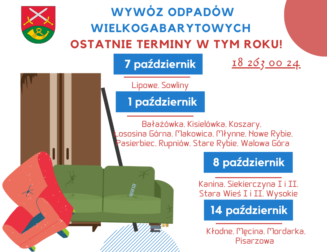 Informujemy, że w miesiącu październiku odbędzie się ostatni w tym roku odbiór odpadów wielkogabarytowych na terenie gminy Limanowa.