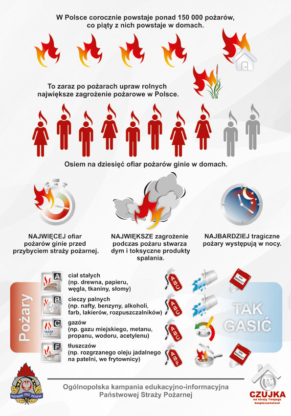 W okresie jesienno-zimowym, w naszym kraju w mieszkaniach i domach jednorodzinnych wzrasta ryzyko powstania pożarów. Najczęściej powodują je wadliwe, albo niewłaściwie eksploatowane urządzenia grzewczych, elektryczne i gazowe. W tym samym okresie odnotowywany jest także wzrost liczby zatruć tlenkiem węgla, zwanym „cichym zabójcą”, gdyż jest niewidoczny oraz nie ma smaku, ani zapachu.