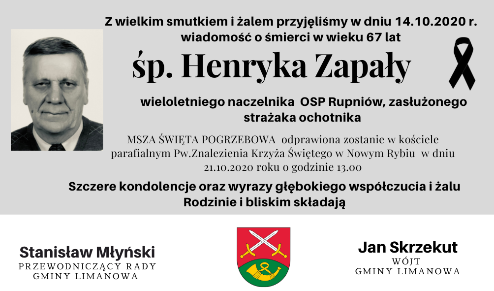 śp. Henryka Zapały wieloletniego naczelnika OSP Rupniów, zasłużonego strażaka ochotnika.
