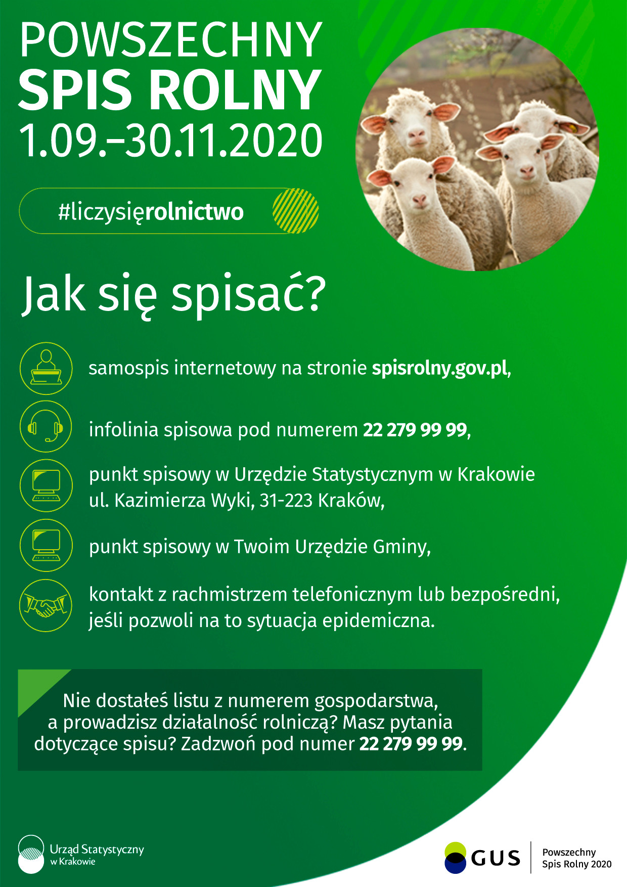 Więcej informacji o Powszechnym Spisie Rolnym 2020 uzyskać można pod adresem: