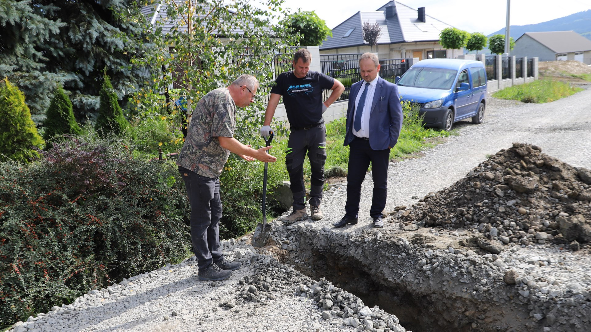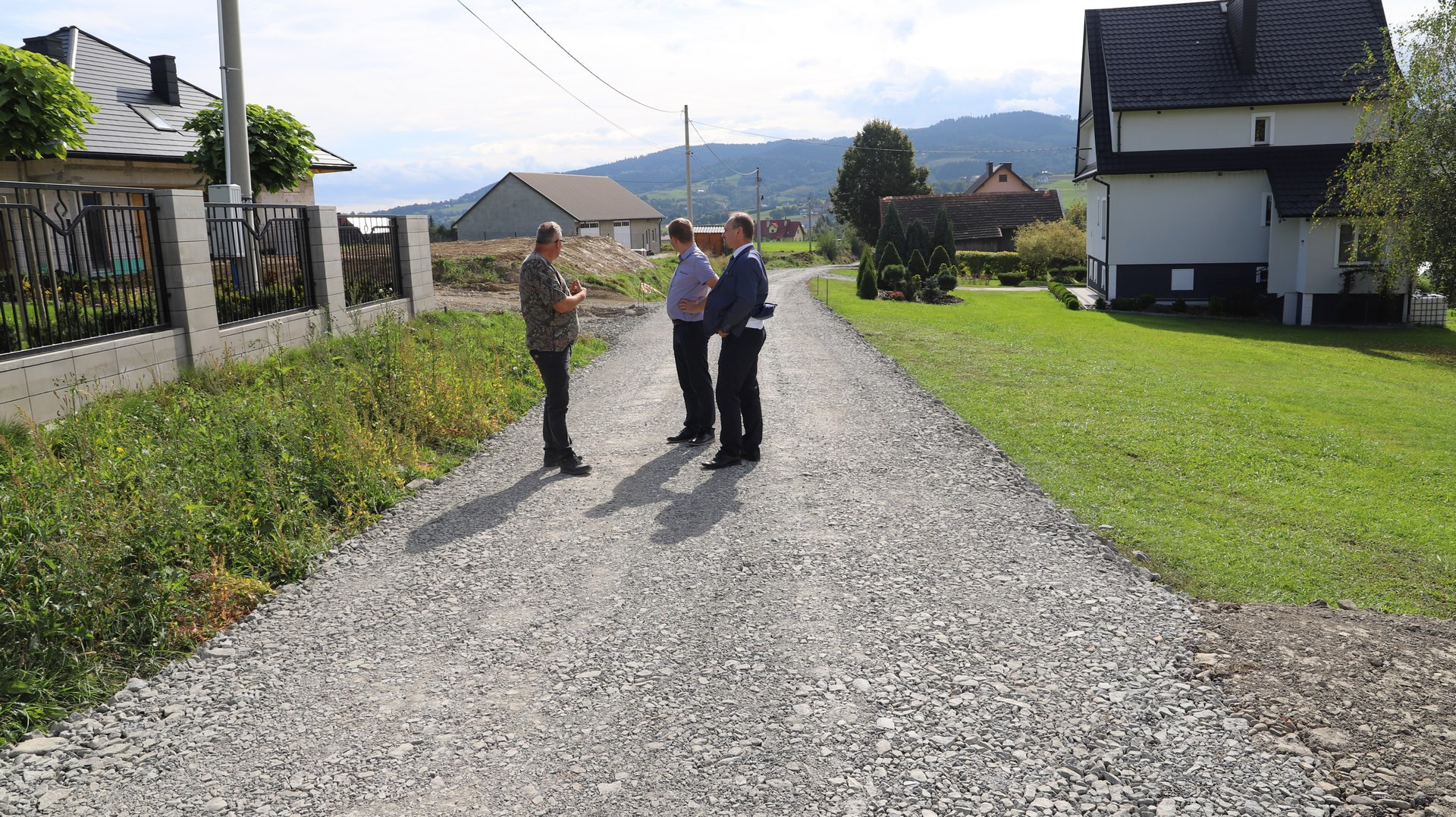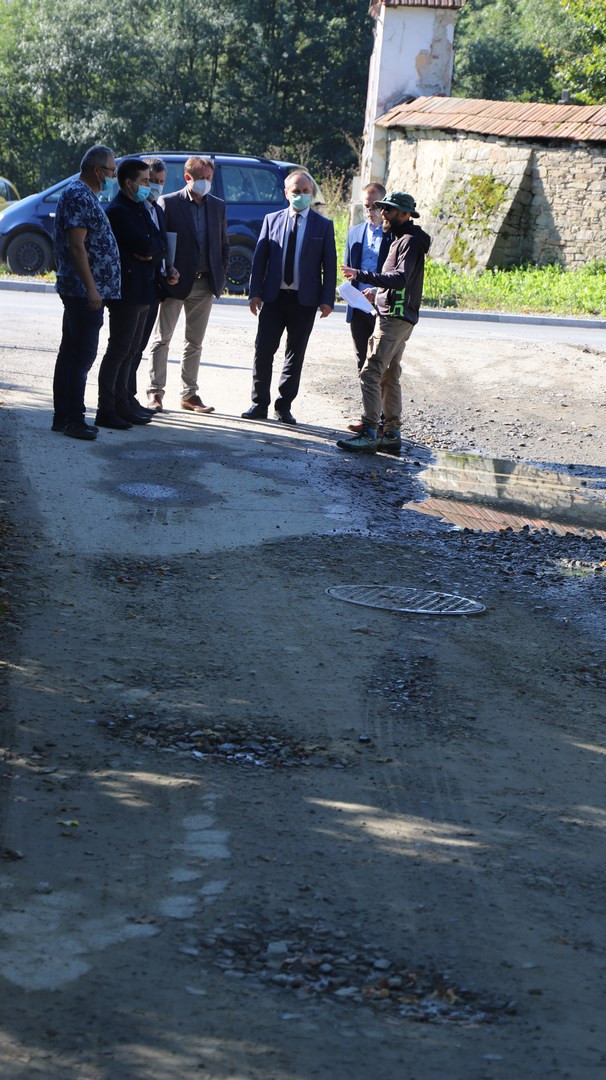 Postęp prac związanych z realizacją inwestycji w obecności przedstawicieli wykonawcy zadania - Firmy Handlowo-Usługowej ERMONT Bartosza Ruchały z Męciny oraz podwykonawcy - Firmy Handlowo Usługowej “KADBUD” Kazimierza Dudzika z Mszany Dolnej wizytował na miejscu Wójt Gminy Limanowa Jan Skrzekut, Wicewójt Gminy Limanowa Wojciech Pazdan wraz z radnymi gminy Limanowa Jerzym Jabłońskim i Rafałem Woźniakiem oraz Kierownikiem Wydziału Inwestycji i Funduszy Europejskich Stanisławem Piegzą. Zaawansowaniu robót przyglądał się także Poseł na Sejm RP Wiesław Janczyk.