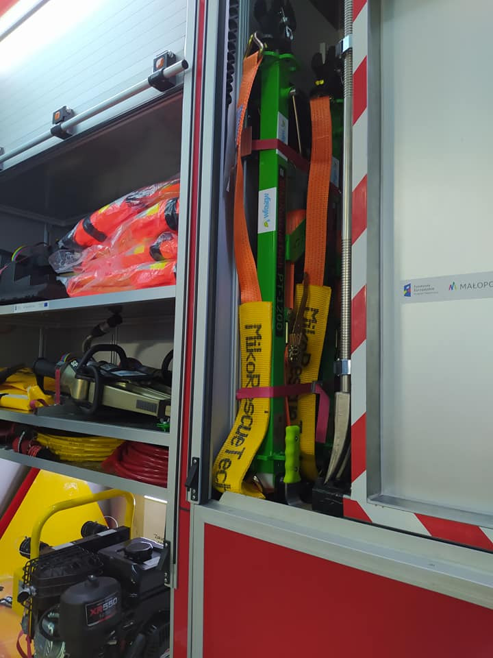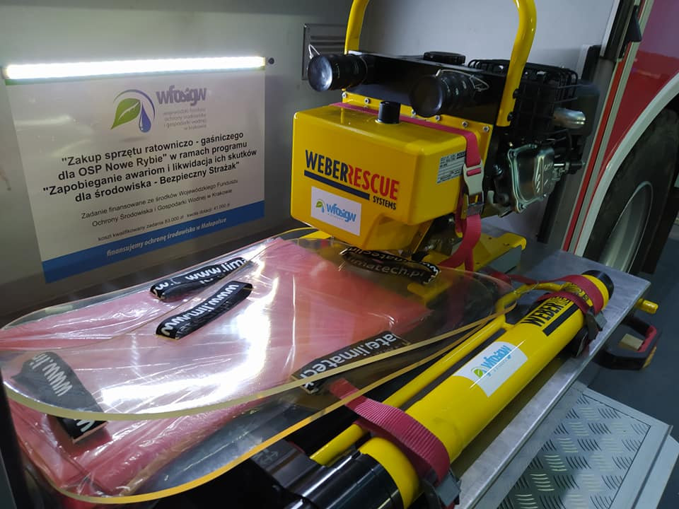 Jednostka OSP w Nowym Rybiu doposażona została m.in. w zestaw hydraulicznych narzędzi ratowniczych, aparaty nadciśnieniowe powietrzne, zestaw podkładów i klinów do stabilizacji, zestaw podpór stabilizacyjnych, kamizelki strażackie, parawan ochronny.