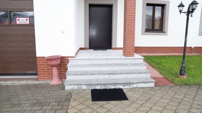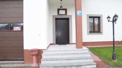 Zakres wykonanych prac obejmował wymianę okładziny schodów zewnętrznych z płyt granitowych, remont elewacji polegający na naprawie i uzupełnieniu tynków, malowanie elewacji farbami akrylowymi oraz wymianę drzwi wejściowych.