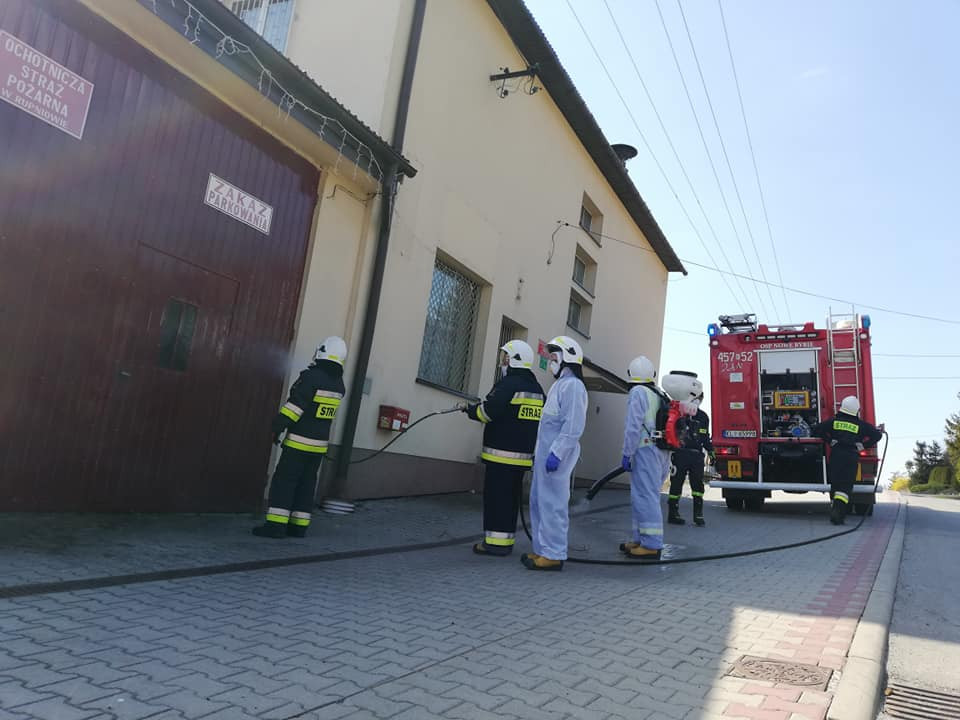 Działania związane z dezynfekcją miejsc publicznych, z których najliczniej korzystają mieszkańcy prowadzone były przez jednostki OSP z Wysokiego, Starej Wsi I oraz Nowego Rybia.