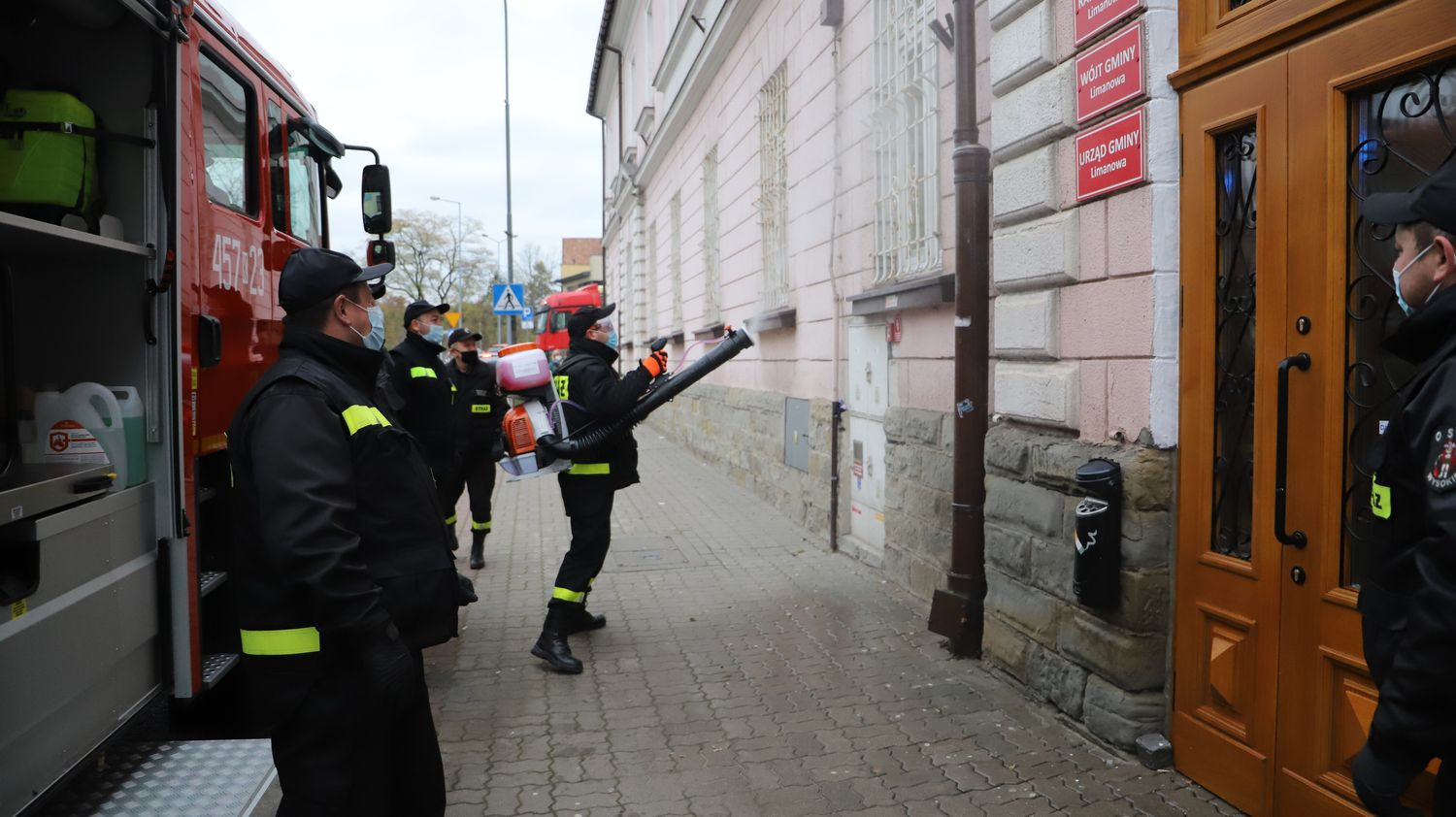 W związku z zagrożeniem epidemiologicznym i trwająca pandemią, mając na względzie bezpieczeństwo osób korzystających z miejsc publicznych na terenie gminy Limanowa strażacy z gminnych jednostek OSP podjęli działania związane z dezynfekcją miejsc szczególnie uczęszczanych przez mieszkańców. Dezynfekcji poddano budynki użyteczności publicznej - m.in. wejścia do obiektów szkolnych oraz przyszkolną bazę rekreacyjno-sportową, wiaty przystankowe i turystyczne, a także wejścia do kościołów.