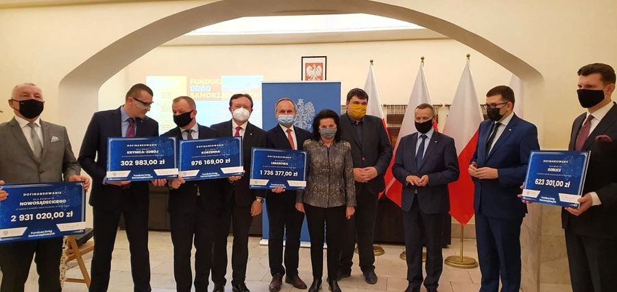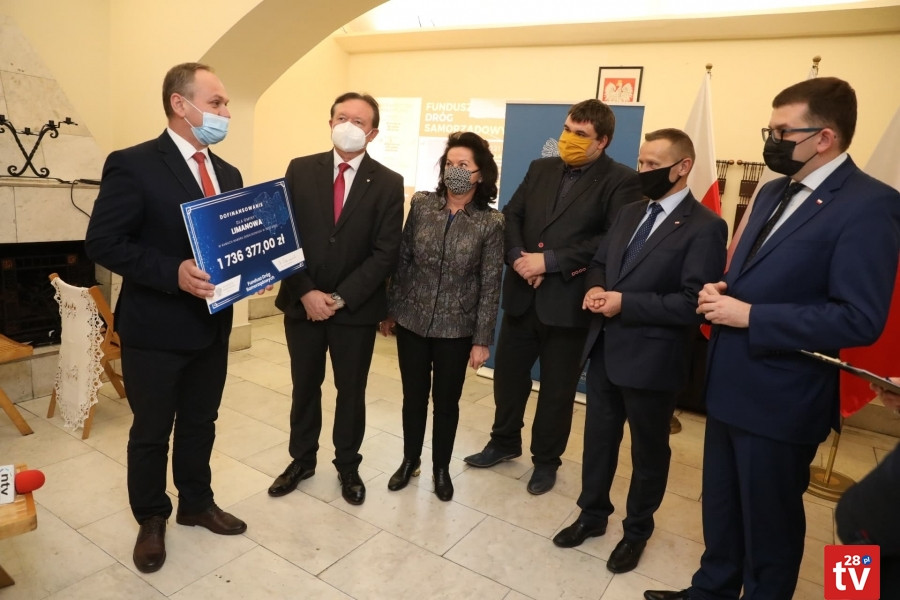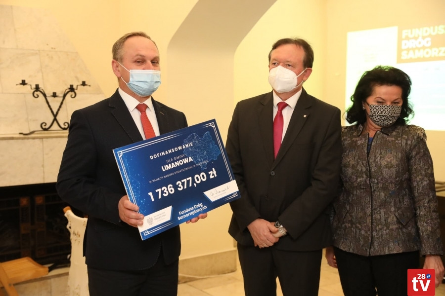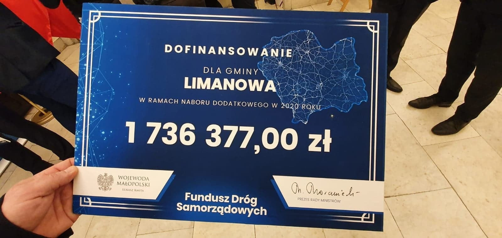 W dniu dzisiejszym tj. 25 listopada Wójt Gminy Limanowa Jan Skrzekut z rąk Wojewody Małopolskiego Łukasza Kmity oraz Wicewojewody Józefa Leśniaka odebrał czek potwierdzający przyznanie dofinansowania w ramach dodatkowego naboru z Funduszu Dróg Samorządowych na 2020 rok.