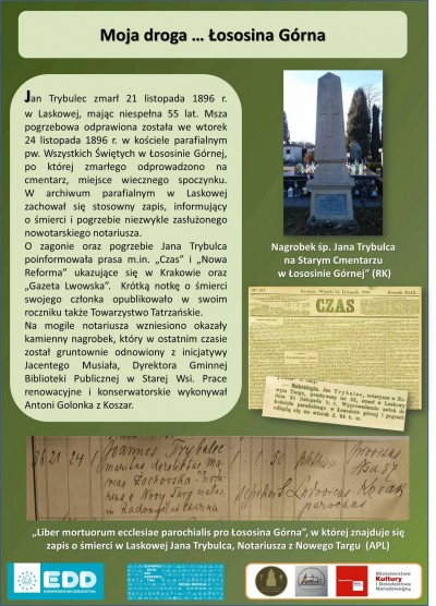 W ramach Europejskich Dni Dziedzictwa powstała również wirtualna wystawa historyczna zatytułowana „Moja droga … Radomyśl - Krościenko - Nowy Targ - Łososina Górna na temat Jana Trybulca (1842-1896).