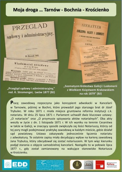 Ekspozycja przybliża sylwetkę niezwykle zasłużonej postaci: notariusza i działacza społecznego, którego droga życiowa i zawodowa związana była z kilkoma miejscowościami w tym m.in. Krościenkiem nad Dunajcem czy Nowym Targiem i Zakopanem. Jego zasługi dla społeczności tych miast były znaczące, a dziś jest on niemal zupełnie zapomniany. Spoczywa na niewielkim starym cmentarzu w Łososinie Górnej z dala zarówno od swoich rodzinnych stron jak i miejsc związanych z jego działalnością społeczną i zawodową.