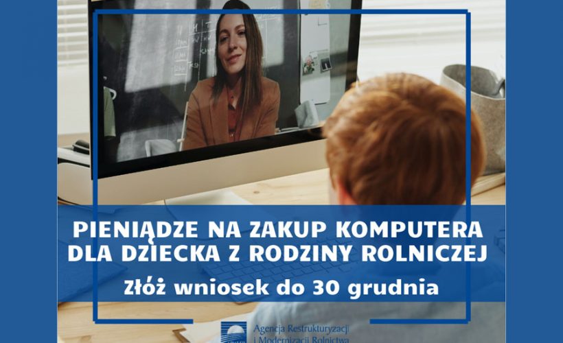 Do 30 grudnia 2020 r. można składać wnioski o przyznanie pomocy na dofinansowanie kosztów zakupu komputera stacjonarnego lub przenośnego (laptopa) wraz z niezbędnym oprogramowaniem oraz myszą, klawiaturą i ładowarką. Wysokość pomocy wynosi 1500 zł na rodzinę.