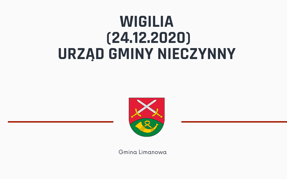 Informujemy, że w czwartek 24 grudnia 2020 r. (Wigilia) Urząd Gminy Limanowa będzie nieczynny.