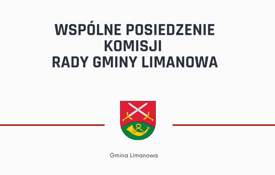 Na podstawie § 60 ust. 1, ust. 3 i ust. 7 uchwały Nr XXIX/278/2018 Rady Gminy Limanowa z dnia 6 września 2018 r. w sprawie Statutu Gminy Limanowa (Dz. Urz. Woj. Mał. z 2018 r. poz. 6395) zapraszam na wspólne posiedzenie Komisji Finansów i Rozwoju Gospodarczego, Komisji Gospodarki Komunalnej, Ochrony Środowiska i Planowania Przestrzennego, Komisji Oświaty, Zdrowia i Pomocy Społecznej oraz Komisji Kultury, Sportu i Turystyki Rady Gminy Limanowa, które odbędzie się w dniu 7 grudnia 2020 r. /poniedziałek/ o godz. 13.00 w sali konferencyjnej Urzędu Gminy Limanowa.
