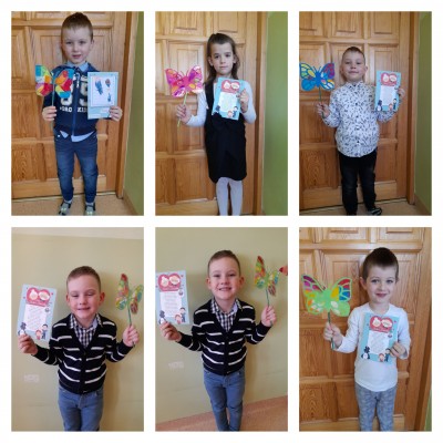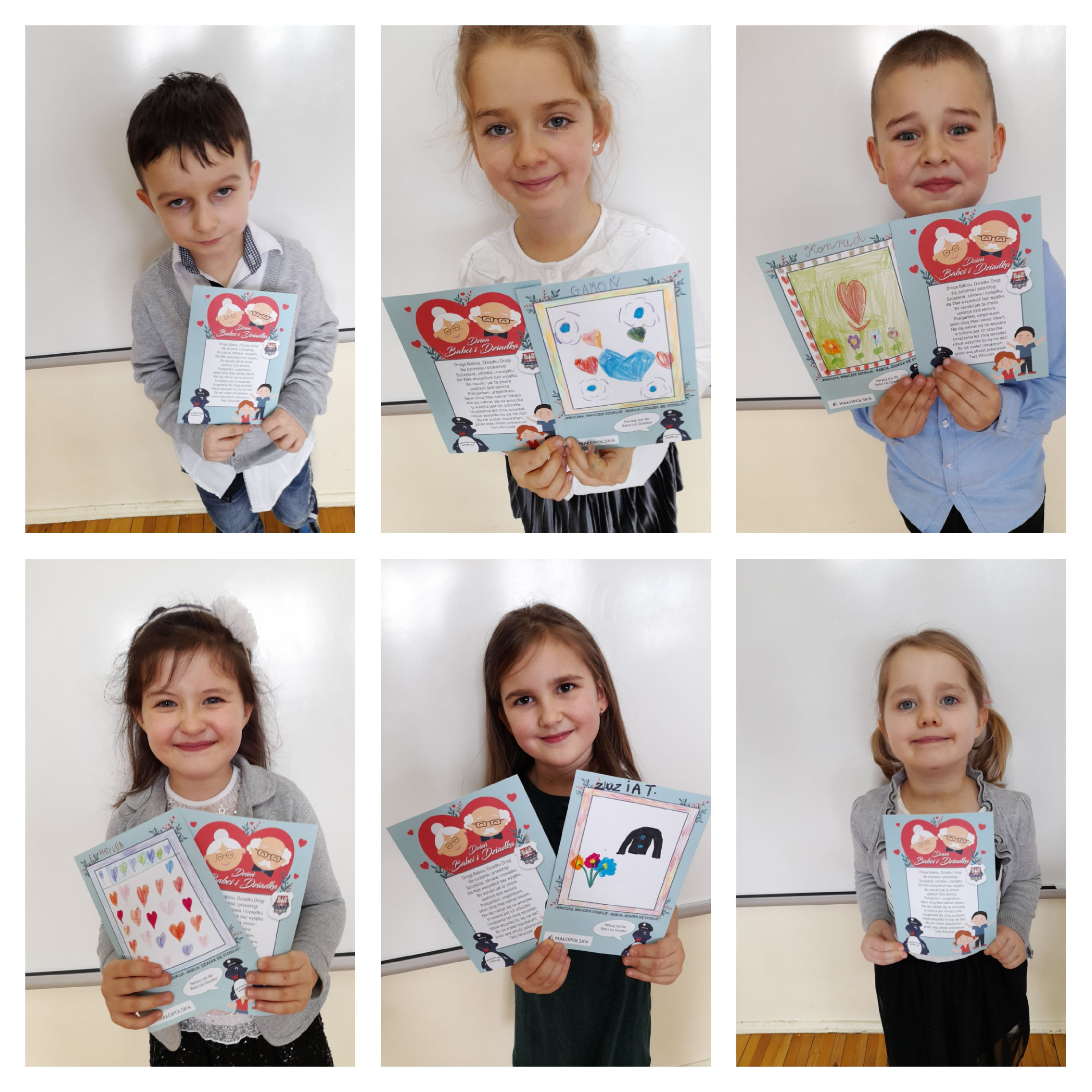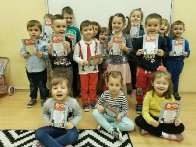 Akcji „ Wnuczka, Wnuczek edukuje – Babcia, Dziadek się stosuje” we współpracy z Komendą Powiatową Policji w Limanowej. Przedszkolaki wykonały laurki z przesłaniem treści profilaktycznych dla Dziadków: