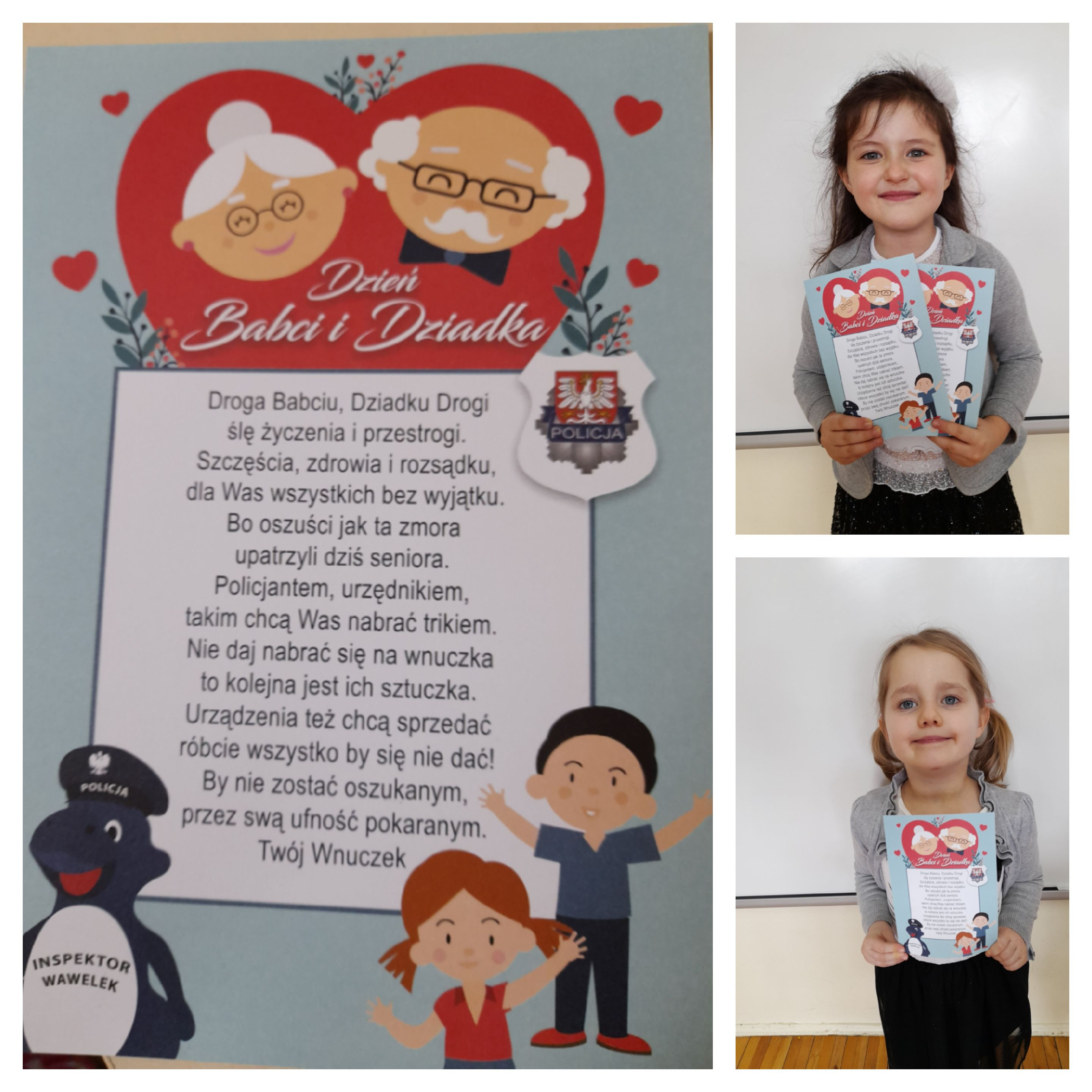 Mamy nadzieję, że Wszystkim Babciom i Dziadkom nasze występy umiliły ten trudny czas. Życzymy Wam dużo zdrowia, siły oraz uśmiechu na kolejne lata! Pamiętajcie również o swoim bezpieczeństwie! My dzieci wiemy, iż Wasze dobre i ufne serca już nigdy więcej nie dadzą się nabrać oszustom!