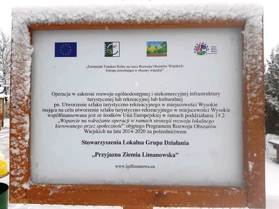 Inwestycja powstała dzięki Stowarzyszeniu Rozwoju Wsi Wysokie w ramach projektu dofinansowanego ze środków Europejskiego Funduszu Rolnego na Rzecz Rozwoju Obszarów Wiejskich PROW 2014-2020, za pośrednictwem LGD „Przyjazna Ziemia Limanowska” przy wsparciu Gminy Limanowa, na czele z Wójtem - Janem Skrzekutem.