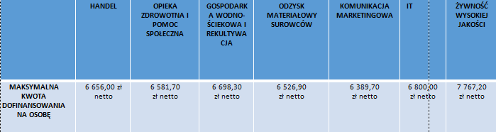 W ramach projektów przyjęto maksymalną wartość dofinansowania, która może zostać przyznana na 1 pracownika (nie ma limitu na firmę):
