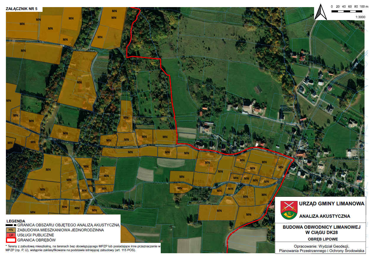 W związku z pismem z dn. 22.12.2020 roku, otrzymanym 29.12.2020 r., uzupełnionym 03.03.2021 roku, dotyczącym sklasyfikowania pod kątem akustycznym obszarów wskazanych na przedłożonym planie orientacyjnym w oparciu o miejscowe plany zagospodarowania przestrzennego lub inne obowiązujące dokumenty planistyczne dla zadania „Opracowanie dokumentacji projektowej w fazie Studium techniczno- ekonomiczno-środowiskowego z elementami koncepcji programowej oraz uzyskaniem decyzji o środowiskowych uwarunkowaniach dla zadania pn.: „ Budowa obwodnicy Limanowej w ciągu DK 28”, w załączeniu przedstawiamy proponowaną klasyfikację akustyczną terenu dla miejscowości Mordarka, Lipowe oraz Stara Wieś sporządzoną w oparciu o posiadane informacje z zakresu istniejącej i projektowanej zabudowy na danym terenie wraz z ewentualną możliwością jej dalszej kontynuacji.
