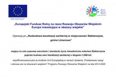 - „Remont drogi gminnej 340500K Siekierczyna - Raszówki - Jabłoniec w km 0+000 do km 3+219 w miejscowości Siekierczyna, Gmina Limanowa”.