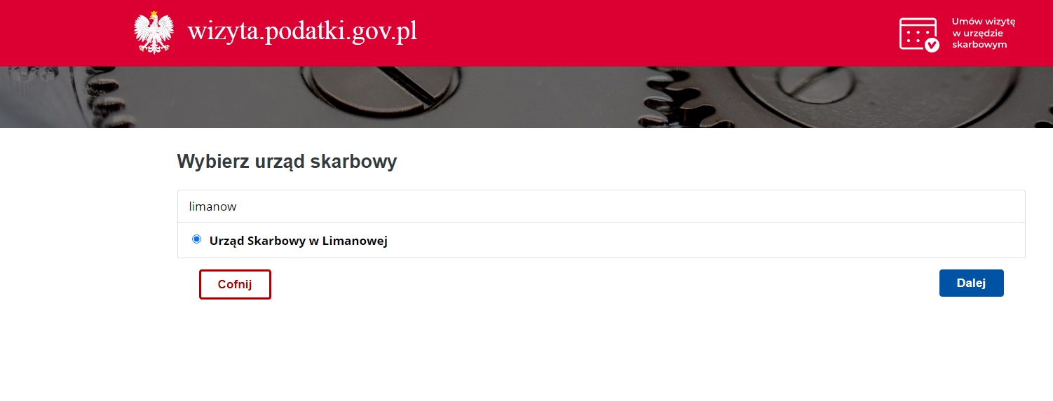 Link do strony :  https://wizyta.podatki.gov.pl/index.php?idUrzad=1201