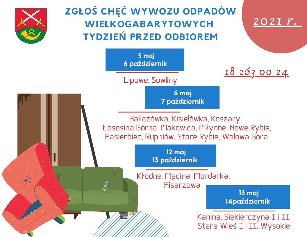 Odbiór wielkogabarytów odbędzie się w następujących terminach: