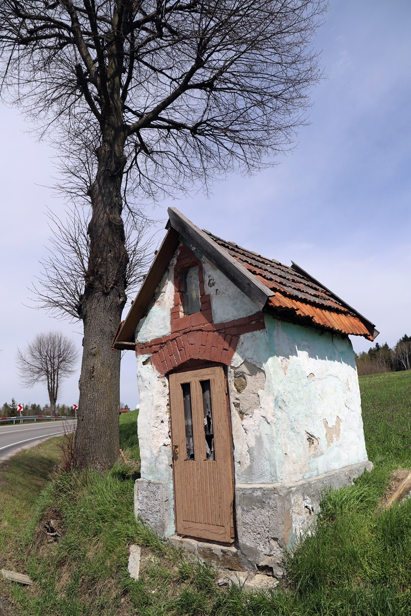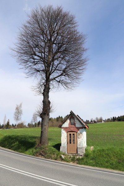 Kapliczka zlokalizowana w pasie drogowym, po lewej stronie drogi krajowej nr 28 z Limanowej do Nowego Sącza. Fundatorem kapliczki był Pan Józef Kotlarz, właściciel ok. 60 ha ziemi, a kapliczka stanowiła granicę jego majątku w II połowie XIX w. Zbudowana na planie prostokąta, murowana z kamienia i cegły, posadowiona na kamiennym cokole, przykryta dwuspadowym dachem, krytym dachówką ceramiczną. W szczycie, w prostokątnej płytkiej niszy ceglanej znajduje się obraz Chrystusa Ukrzyżowanego. Wewnątrz na kamiennym postumencie znajduje się drewniany ołtarzyk ze współczesnym ludowym obrazem na szkle z przedstawieniem Chrystusa Frasobliwego, na ścianach wisi również obraz Serca Najświętszej Maryi Panny oraz obraz Matki Boskiej Bolesnej.