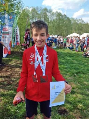 Po przejechaniu ponad 500km i kilkugodzinnym odpoczynku zameldowaliśmy się w centrum zawodów I etapu. W gronie ponad 720 uczestników znalazła się także kilkunastoosobowa reprezentacja Patrii Młynne. Ciekawy teren biegu pozwalał na rozwijanie dużych szybkości, ale zwracać należało baczną uwagę na wybór odpowiedniego wariantu. To był dobry teren dla naszych zawodników. Mogliśmy powalczyć o czołowe miejsca, ale o wskoczeniu na podium mogliśmy tylko marzyć. (Wtedy tak się mi wydawało). Gdy dziewczęta ukończyły już rywalizację w kat. K10 i okazało się , że Julita Mordarska ma brąz, a Anna Juszczak zajmuje 5 miejsce byliśmy bardzo szczęśliwi. Przybiegali nasi kolejni zawodnicy: Dawid Kurnyta i Filip Zelek zajmują miejsca w drugiej dziesiątce, Małgorzata Sroka w K20 wskakuje na 6 pozycję, trener kończy rywalizację zamykając pierwszą dziesiątkę, a Bartek Zelek zajmuje 6 lokatę. Pozostało czekać na ostatniego naszego zawodnika – Antka Bałazińskiego. Czasy jego rywali znakomite, więc musiałby bezbłędnie i na pełnej szybkości przebiec swoją trasę z kilkunastoma punktami kontrolnymi. W końcu jest! Zauważyliśmy go na 200m przed metą – jeszcze tylko 2 PK i wpada na metę. Kilkanaście sekund oczekiwania na wydruk komputerowy i już wiemy. Antoni Bałaziński zdobywa złoty medal Klubowych Mistrzostw Polski w biegu sprinterskim z przewagą 18 sekund nad kolejnym rywalem.. Cóż za początek mistrzostw! Pierwszy start i dwa medale.