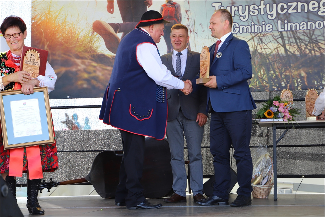 jubileuszu 50-lecia działalności Zespołu Muzycznego Rodziny Wróblów. Wójt Gminy Limanowa uhonorował wszystkich członków zespołu okazjonalnymi rzeźbami i specjalnymi listami gratulacyjnymi.