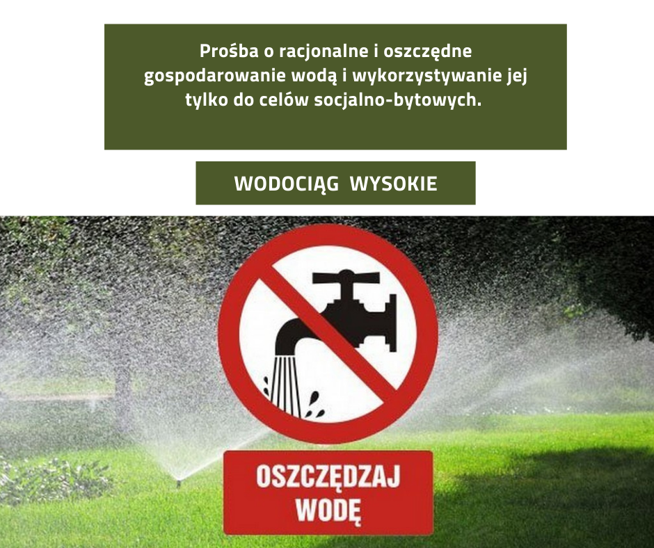 Zwracamy się z prośbą o racjonalne i oszczędne gospodarowanie wodą i wykorzystywanie jej tylko do celów socjalno-bytowych.