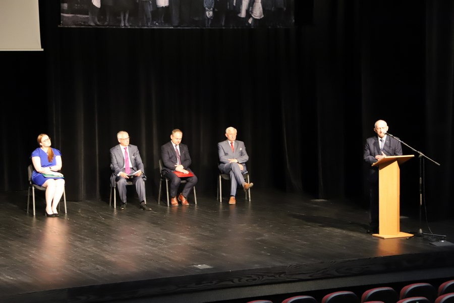 Uroczystość poprowadził koordynator i inicjator wydarzenia - Stanisław Smoleń z Męciny. Zebranych gości przywitał gospodarz obiektu Burmistrz Miasta Limanowa Władysław Bieda. Następnie głos zabrał Jana Skrzekut Wójt Gminy Limanowa przybliżając zebranym współpracę oraz partnerstwo z Gminą Skarbimierz: