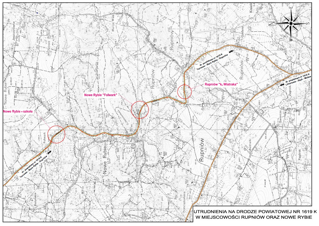 Utrudnień należy spodziewać się w Rupniowie rejon tzw. „wiatraka” oraz w Nowym Rybiu „Folwark” i „Szkoła” – zgodnie z załączoną mapką poglądową. Spodziewany czas trwania prac to ok. 2 tygodnie licząc od dnia 24 czerwca br. Wykonawca dołoży wszelkich starań  aby maksymalnie skrócić czas występowania niedogodności.