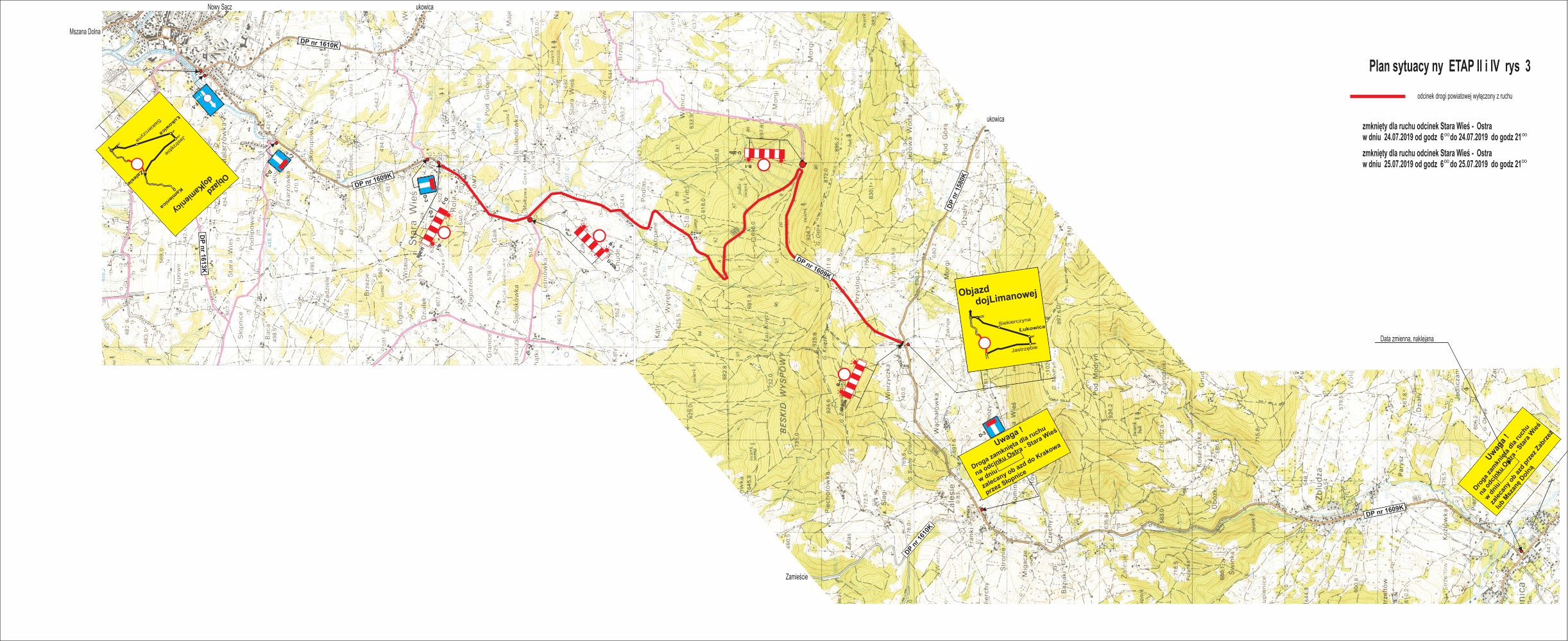 14.00 do 6.00 Zamknięcie drogi od skrzyżowania Stara Wieś-Stara Wieś Wola do skrzyżowania Limanowa Kamienica z Stara Wieś (Zakopane) – Słopnice
